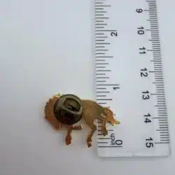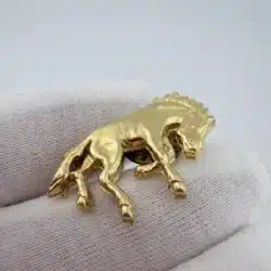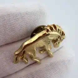 This gold tone lapel pin features a detailed depiction of a bucking horse, capturing the dynamic motion and spirit of rodeo culture. The design reflects the traditional Western heritage and is a nod to the significance of rodeo events in American history.