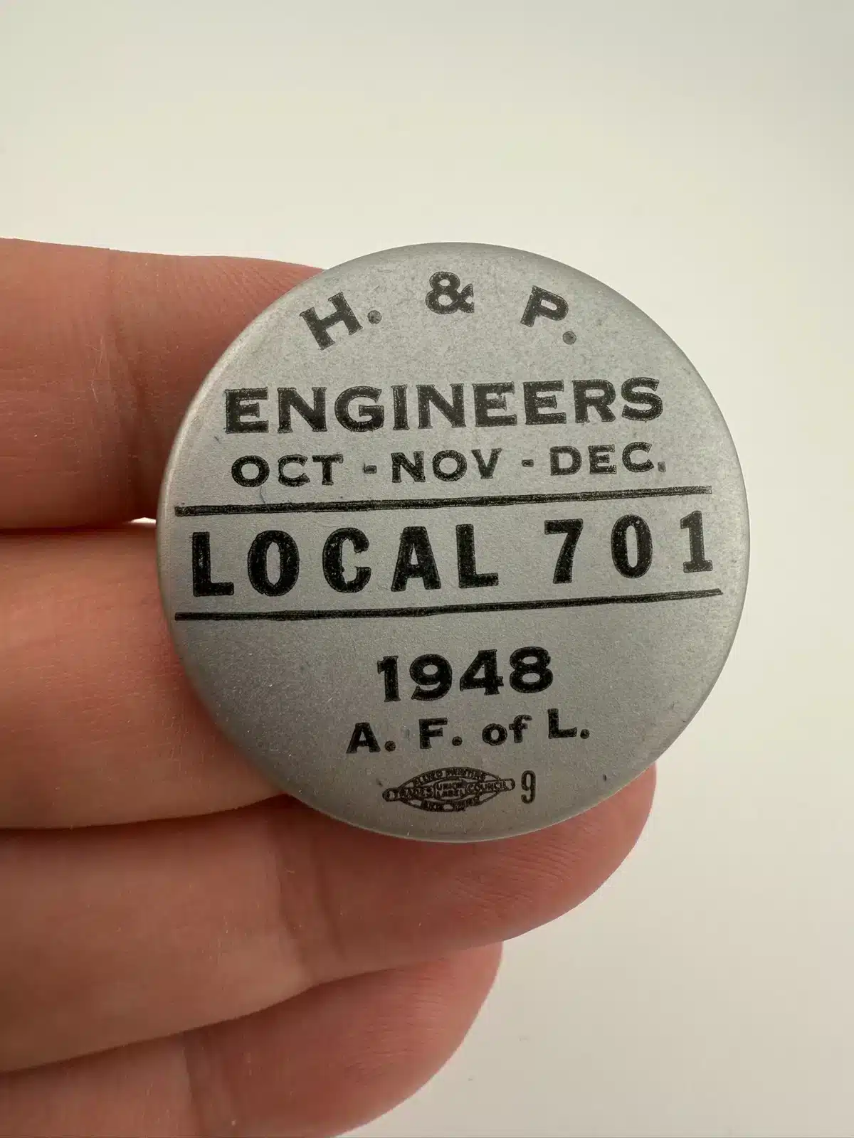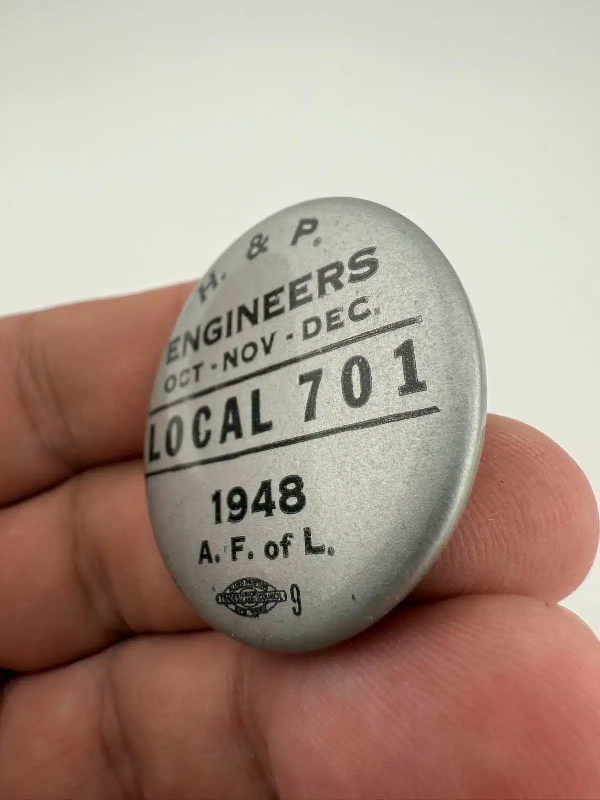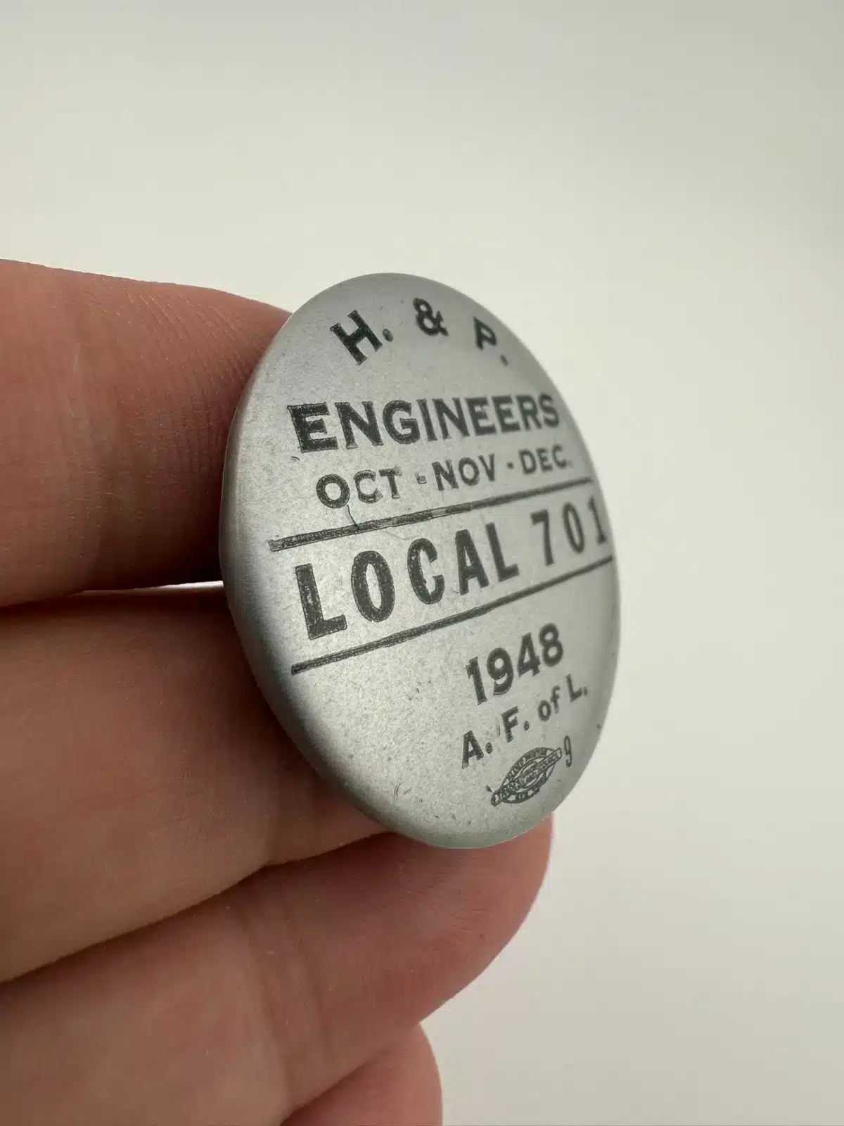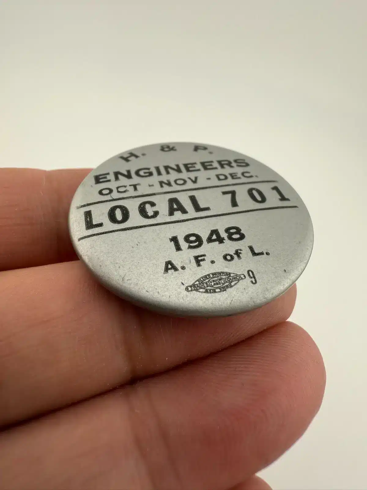H. & P. Engineers, Local 701, 1948, A. F. of L. Button Badge – Oregon