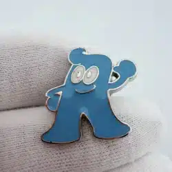 This pin features Haibao, the official mascot of the 2010 World Expo held in Shanghai, China, designed to embody the spirit of the event with its vibrant blue color and playful design.