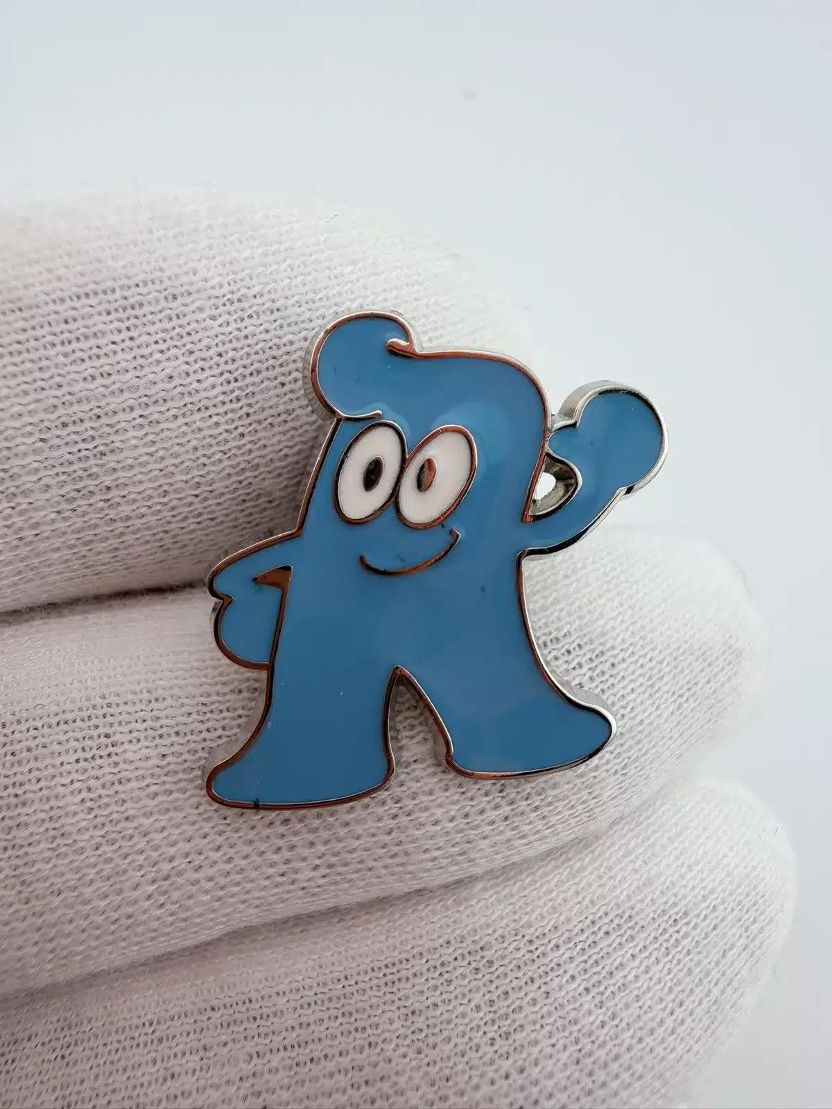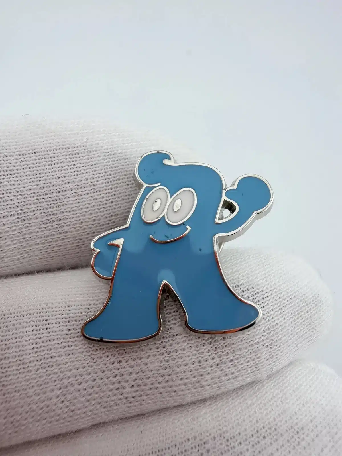 This pin features Haibao, the official mascot of the 2010 World Expo held in Shanghai, China, designed to embody the spirit of the event with its vibrant blue color and playful design.