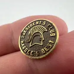 Extremely rare pin given to to individuals who reach certain volumes of sales / other goals at Hardee’s I believe.