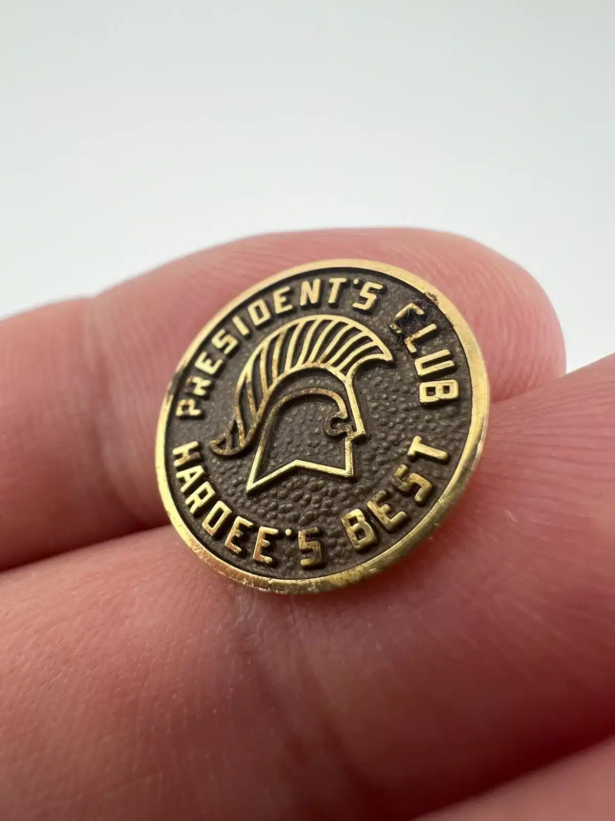 Extremely rare pin given to to individuals who reach certain volumes of sales / other goals at Hardee’s I believe.