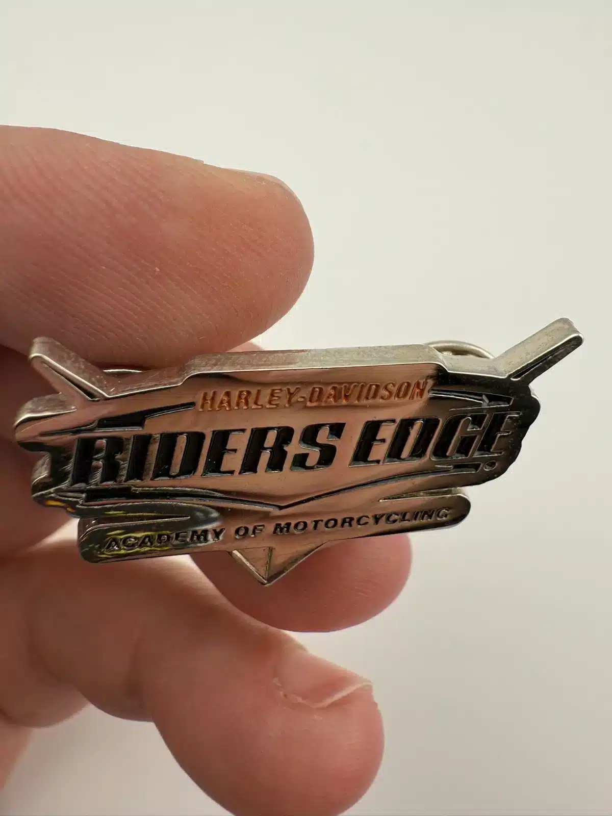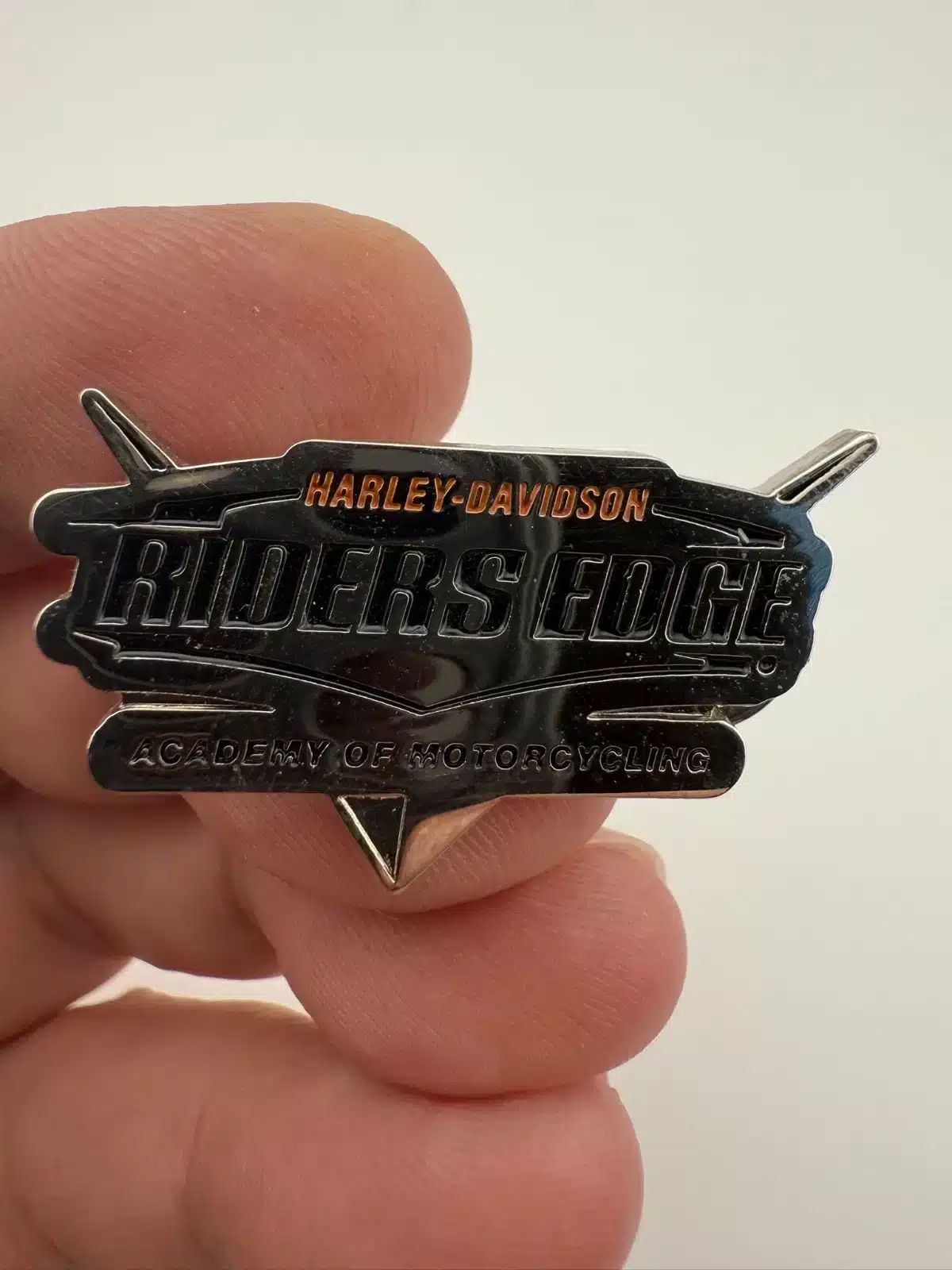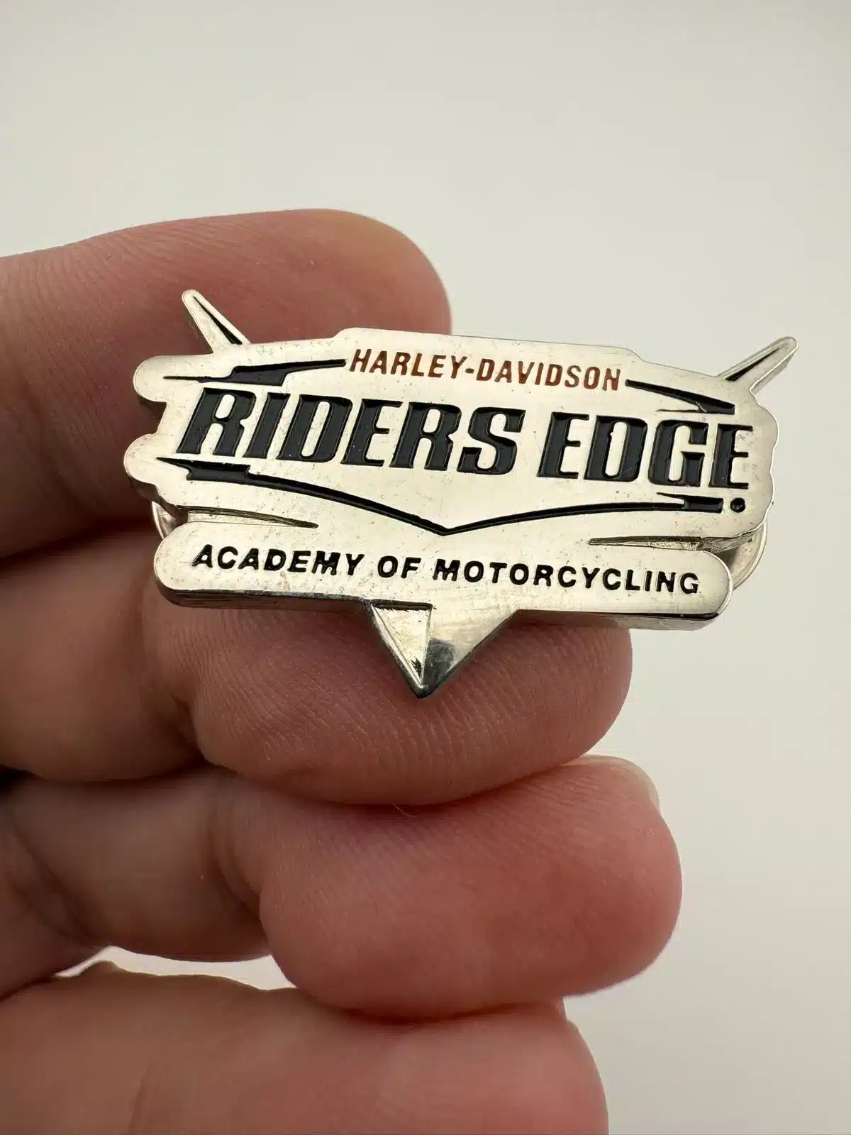 Harley Davidson Riders Edge Academy of Motorcycling Dual Clasp Pin *fingerprints