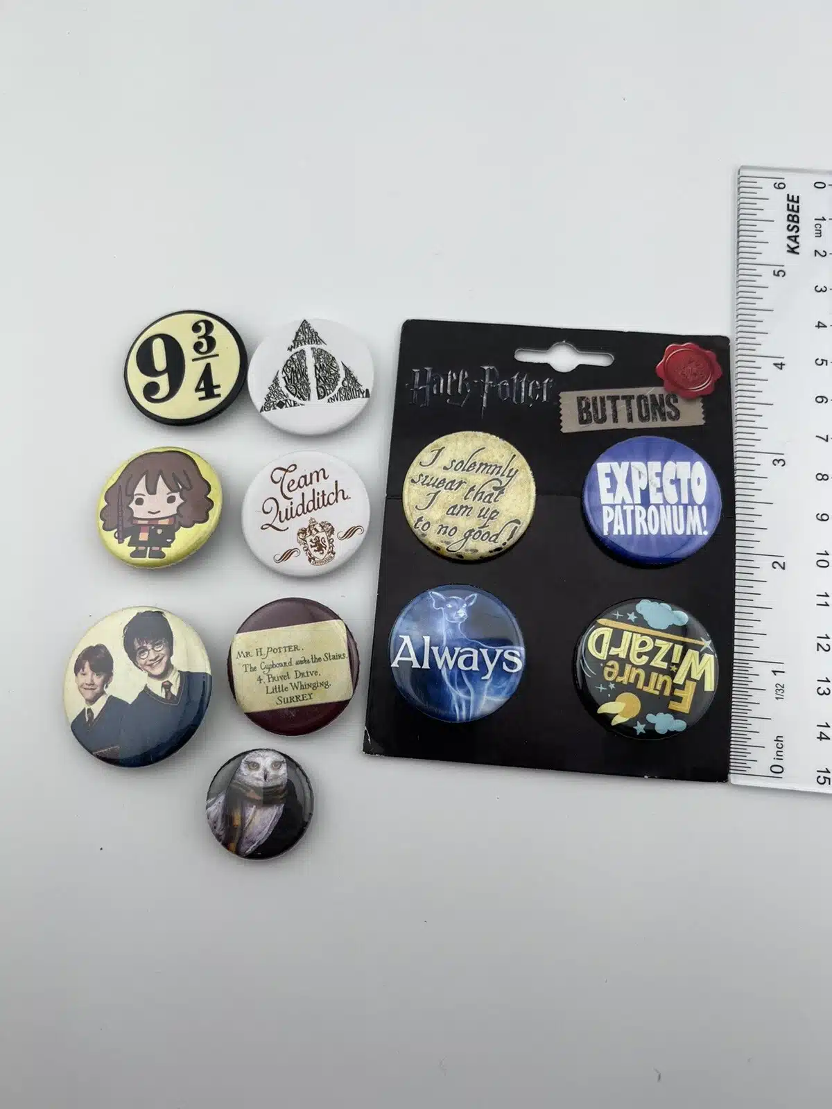 Nice mix of Harry Potter buttons in used condition.