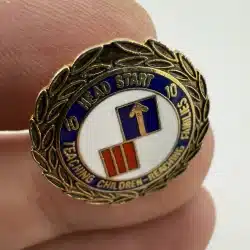 I wasn’t able to find much information about this specific pin, but it is possibly a 10-year employee pin from Head Start or maybe some sort of 10 10 program pin.