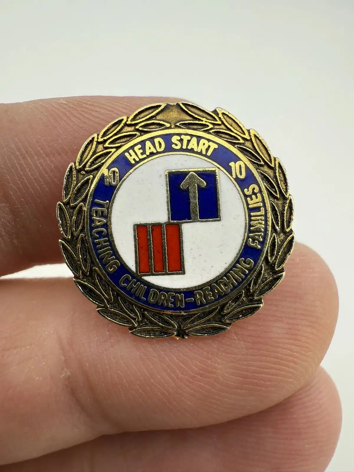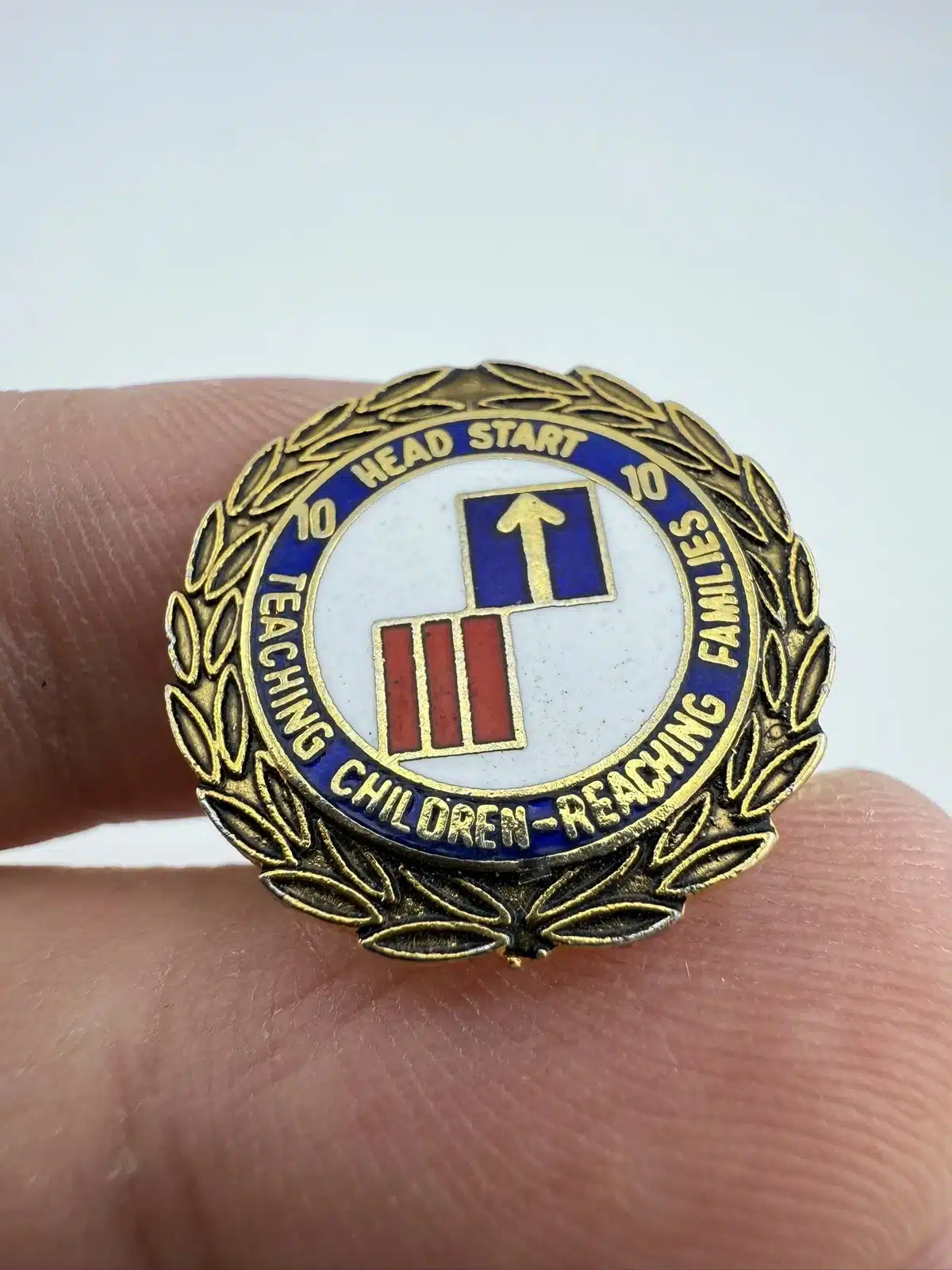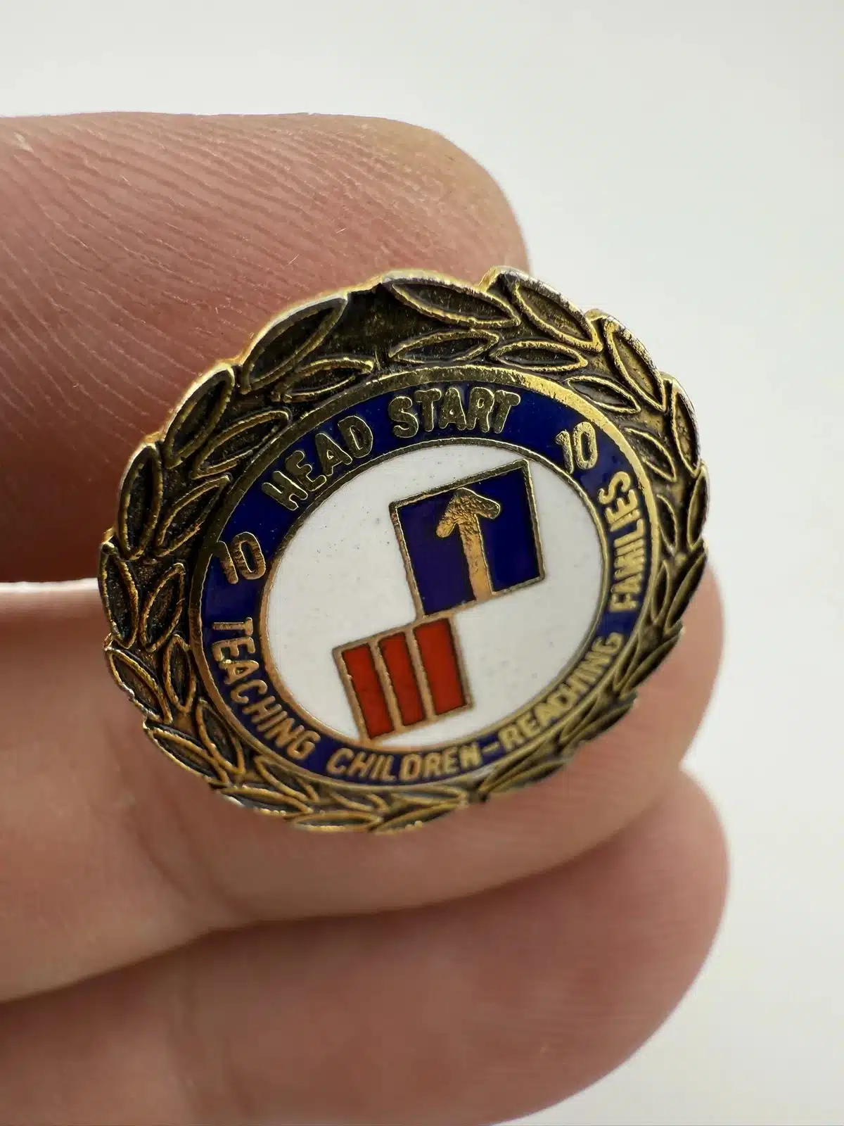 I wasn’t able to find much information about this specific pin, but it is possibly a 10-year employee pin from Head Start or maybe some sort of 10 10 program pin.