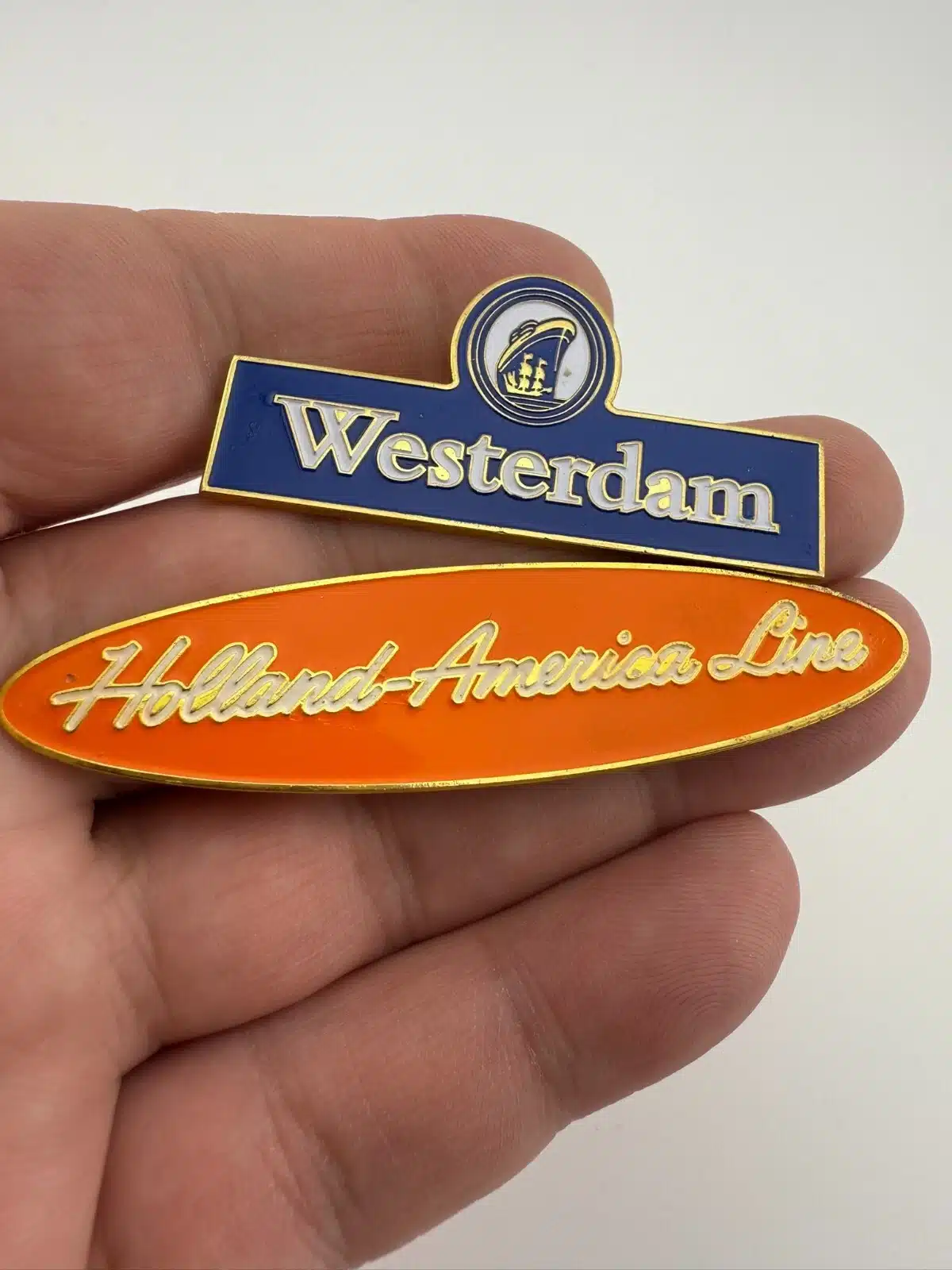 Holland America Line Westerdam Pin + Orange Logo Pin – Royal Blue + Orange