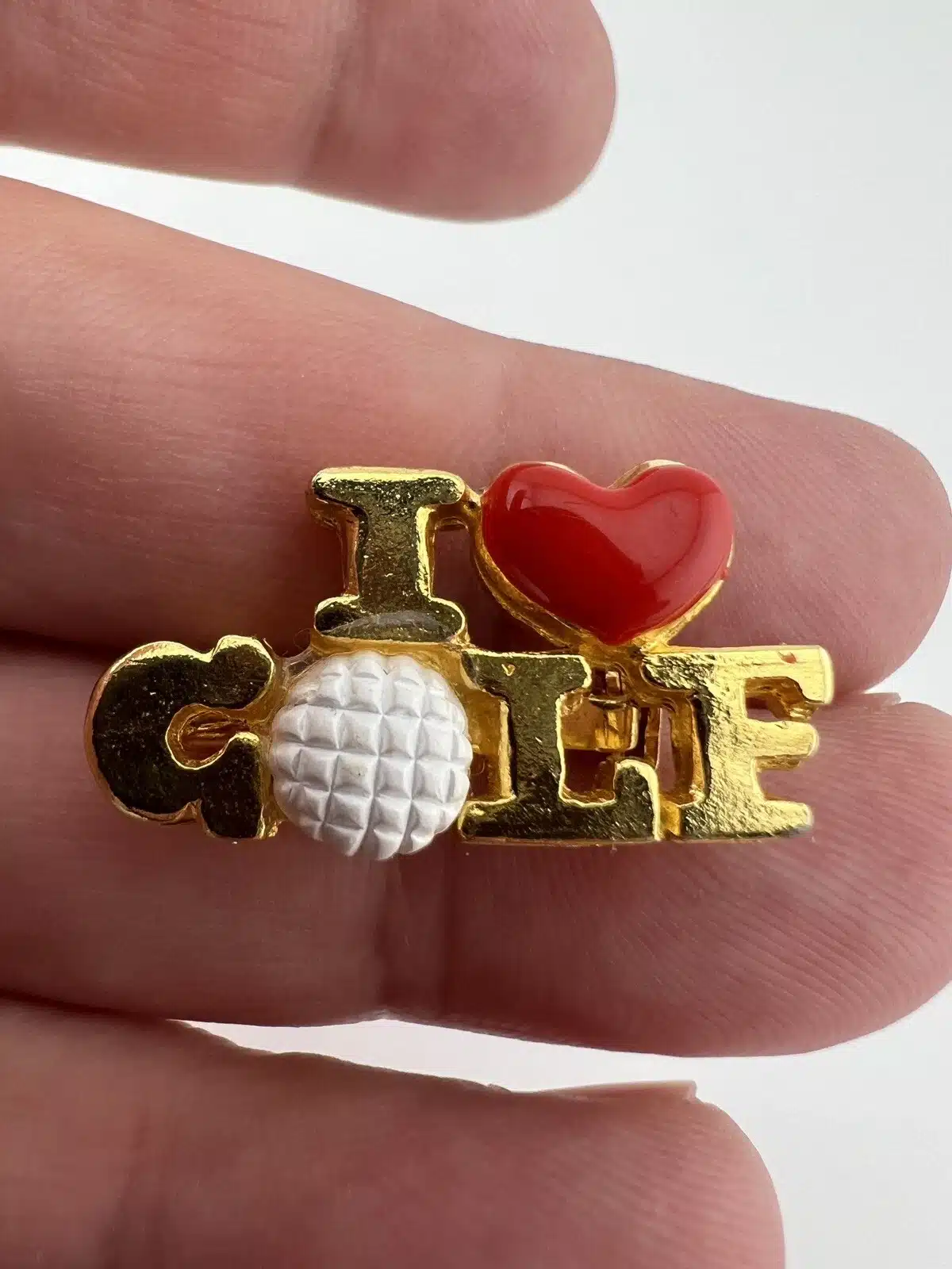 I Love Golf w/ Heart & Golf Ball Gold Toned Pin – Used