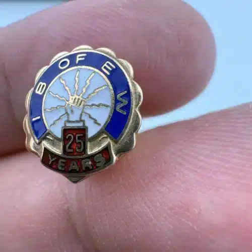 IBEW International Brotherhood of Electrical Workers 25 Years Tie Tack Pin – 10K