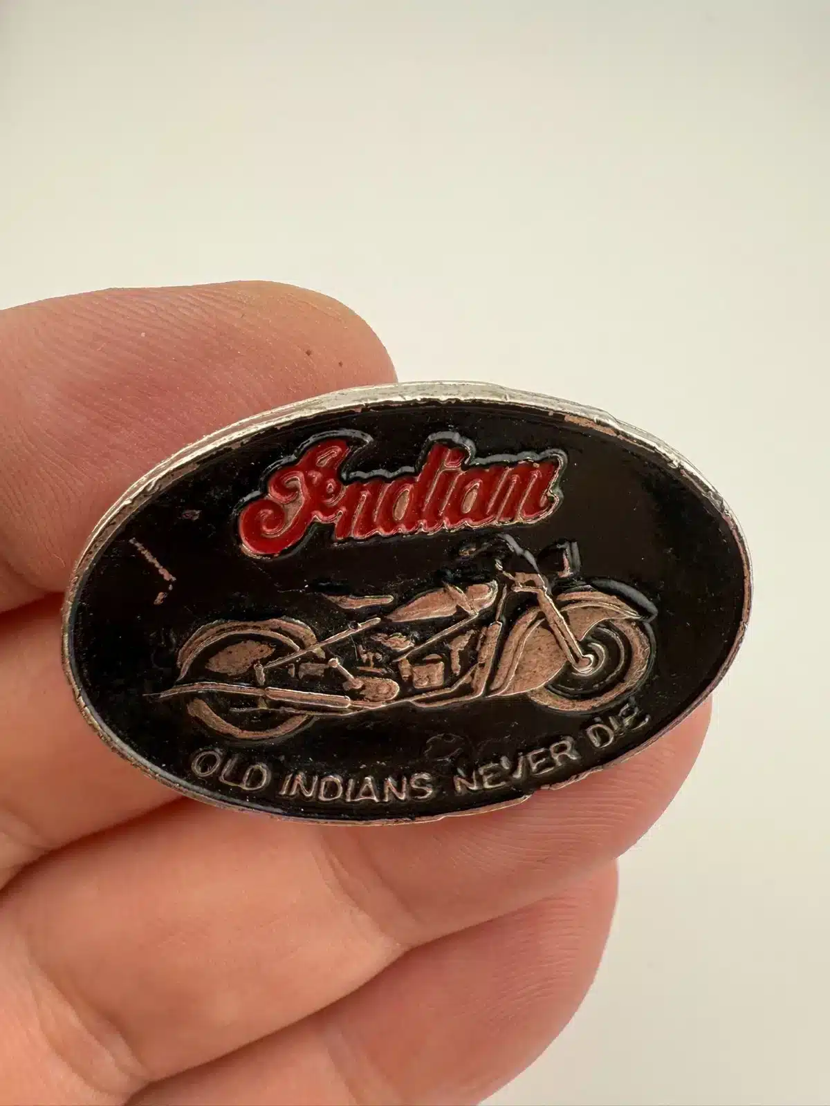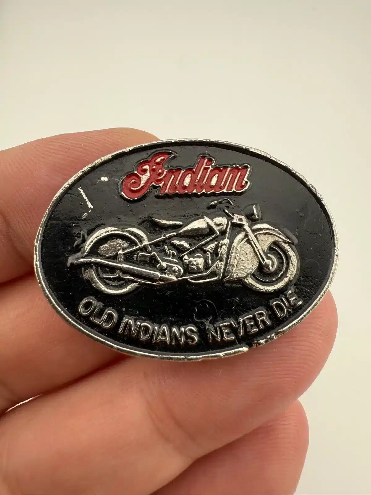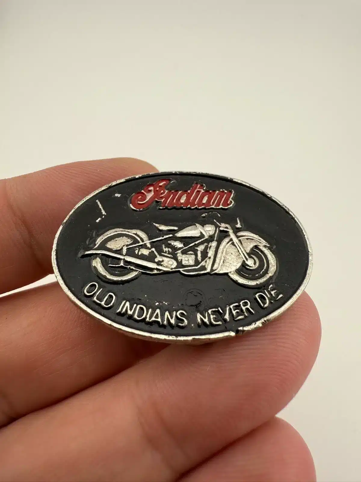Indian Old Indians Never Die Dual Clasp Pin *marks / paint loss*