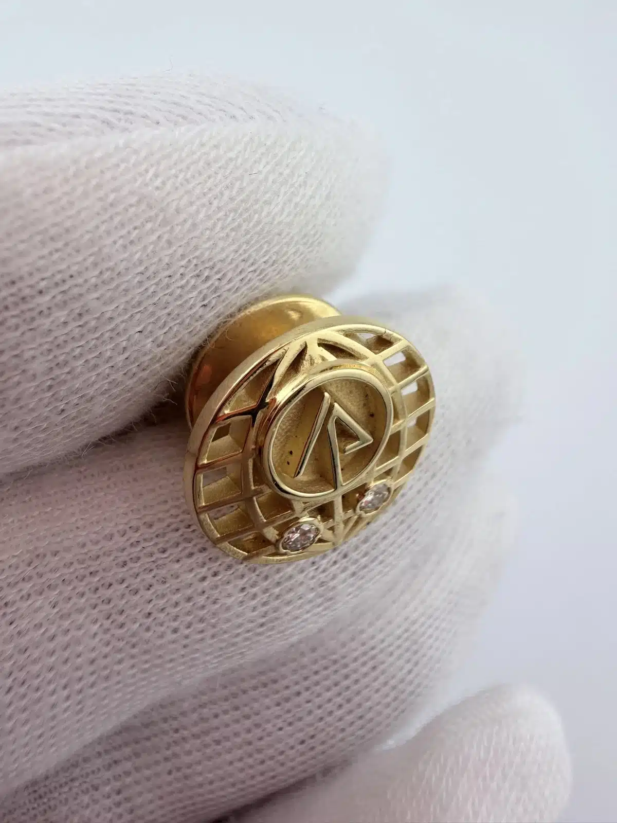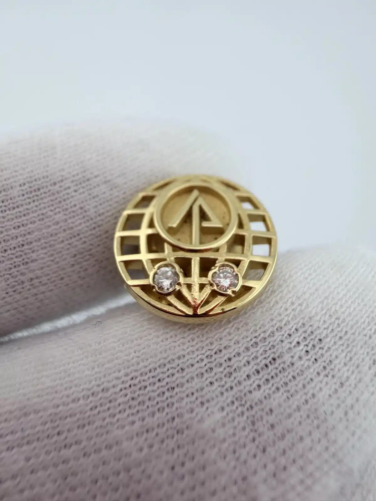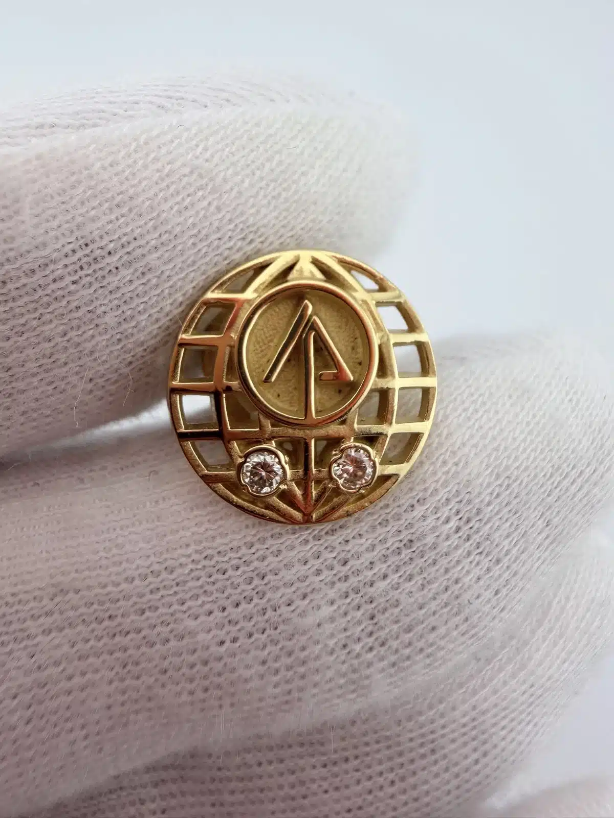This 20 year employee service pin features a globe with a stylized tree at its center, symbolizing the International Paper Company’s commitment to sustainability and global reach. The design is complemented by two stones positioned near the bottom, enhancing its elegance while showcasing the company’s logo. This pin is just over 1/2 inch in diameter.