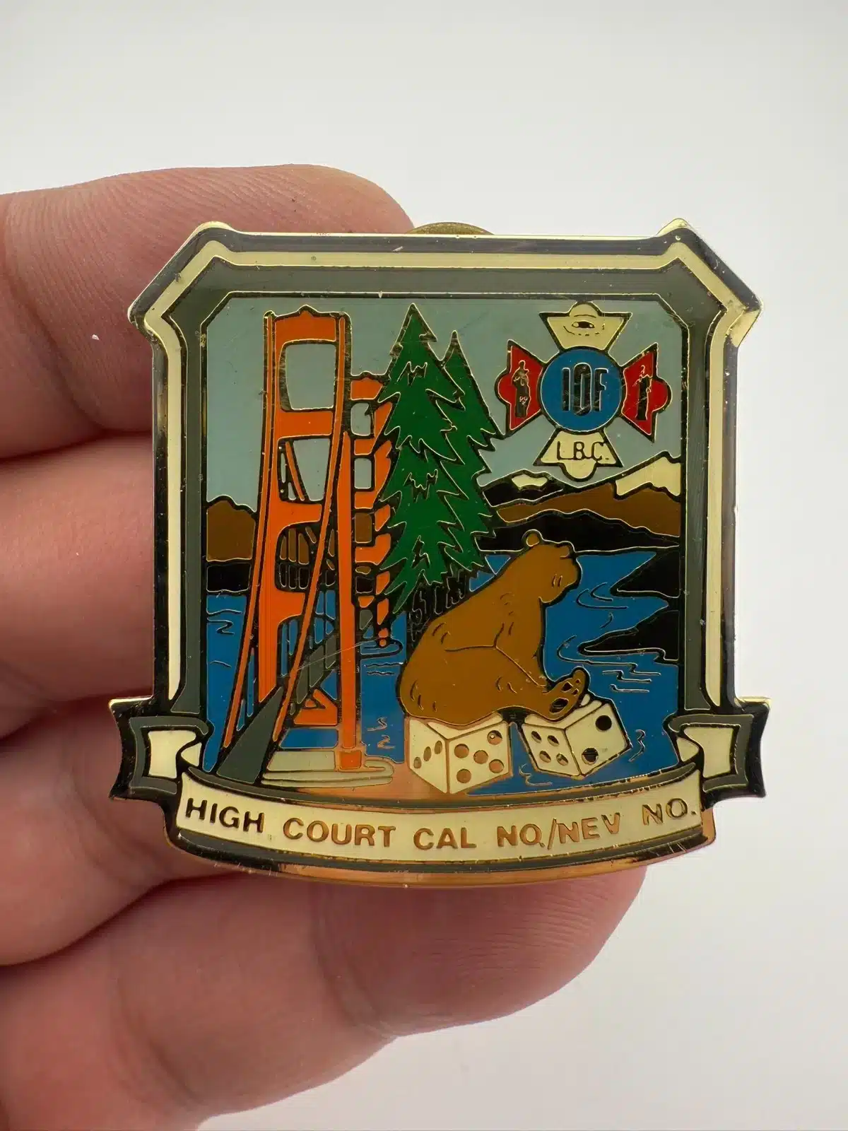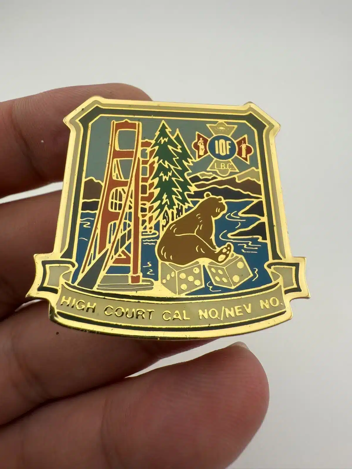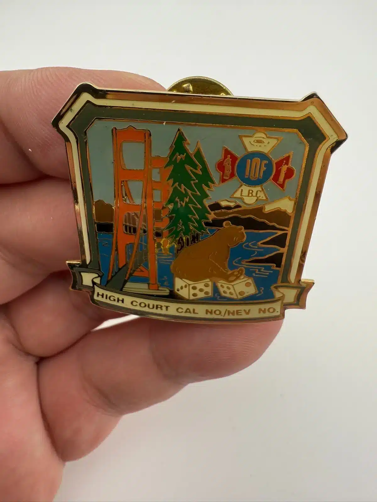 IOF Independent Order of Foresters California Nevada North Bear Bridge Dice Pin