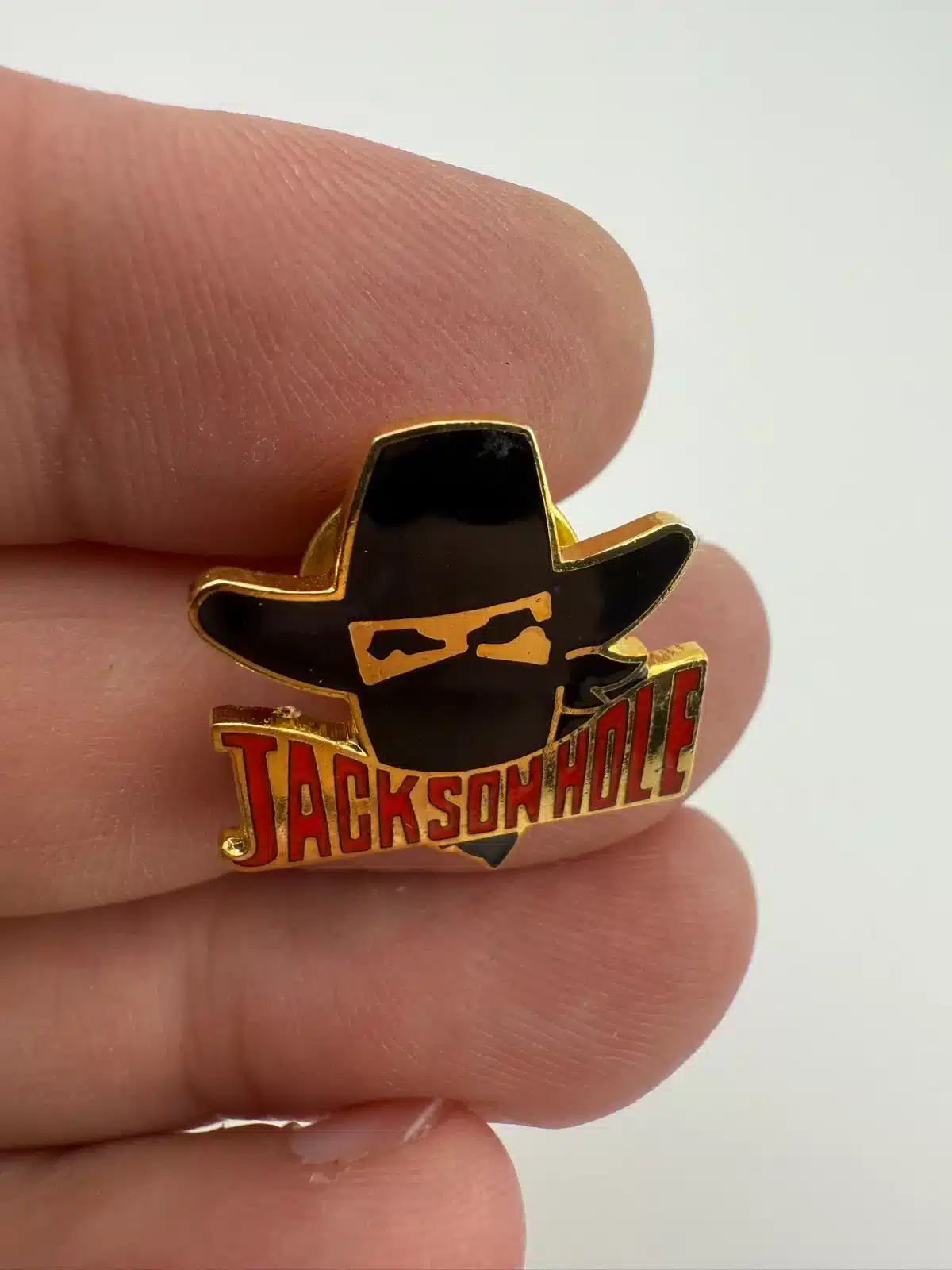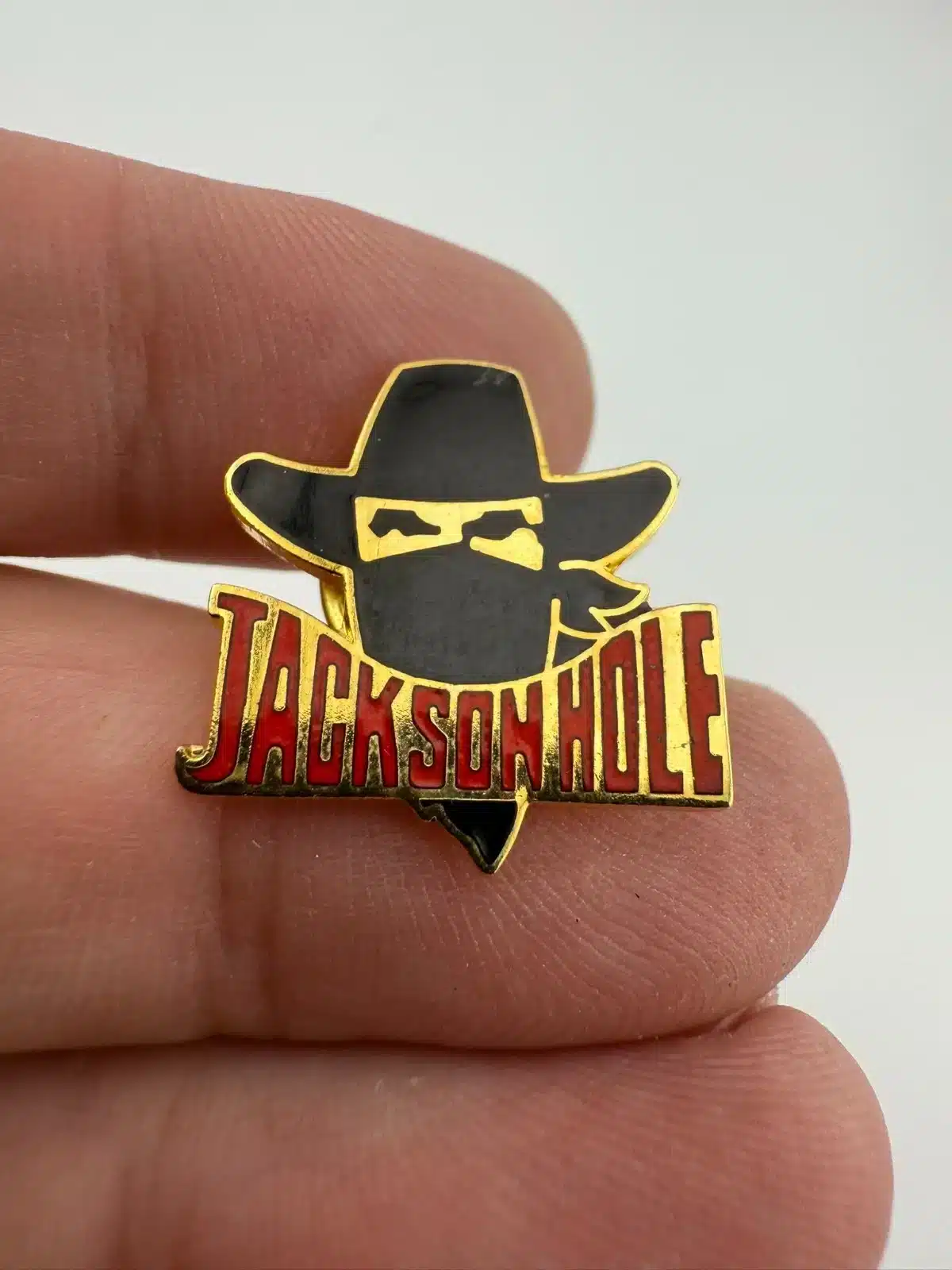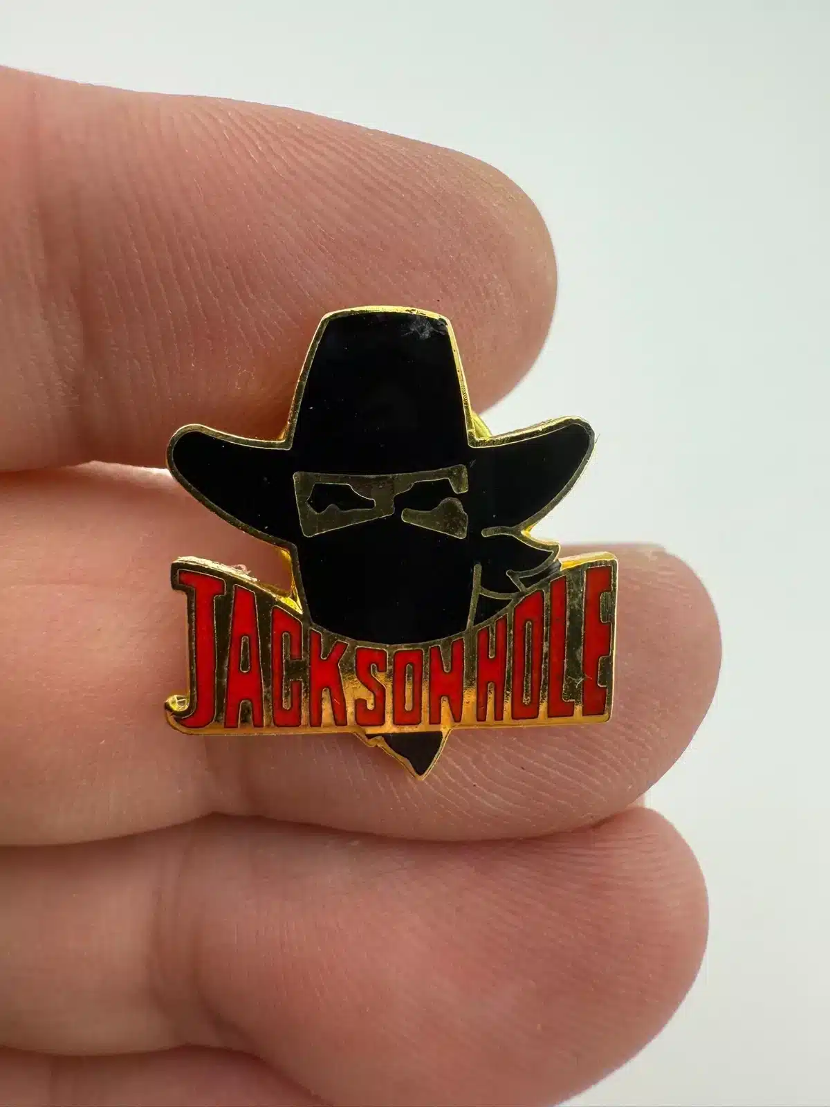 Jackson Hole Wyoming Cowboy Bandit Lapel Pin by GMWS *mark at top*