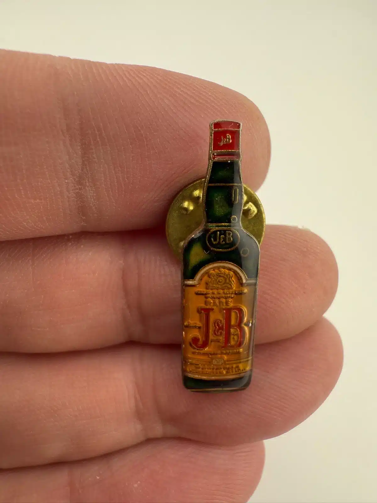 J&B Rare Scotch Whisky dates back to the 1930s, created by the long-established Justerini and Brooks company founded in 1749. This pin features the classic bottle design and makes a great little collectible for whisky or vintage advertising fans.