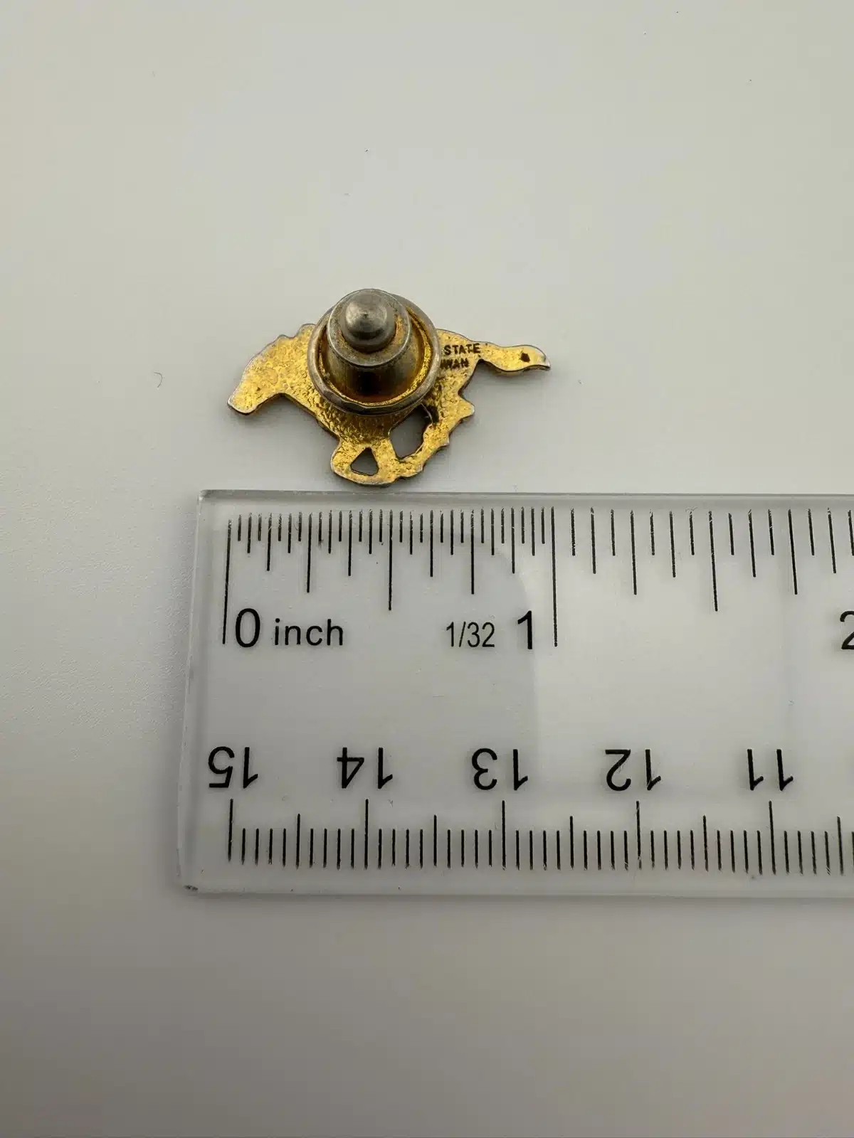 “Gem State” is marked on the reverse of this piece, likely referencing Idaho’s nickname. Pin measures 1 inch in width by just over 1/2 inch in height.