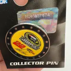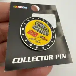Joey Logano drove the No. 22 car for Team Penske during the 2013 NASCAR Sprint Cup Series season, with the Chase for the Sprint Cup serving as the playoff format to determine that year’s champion. Pin measures just over 1 inch in diameter.