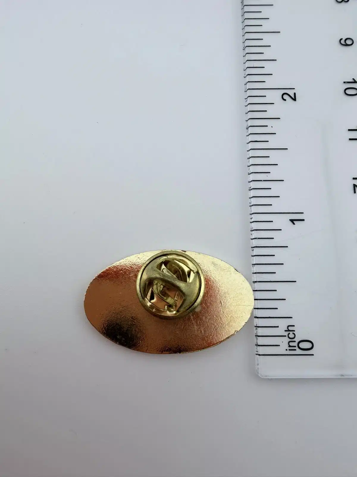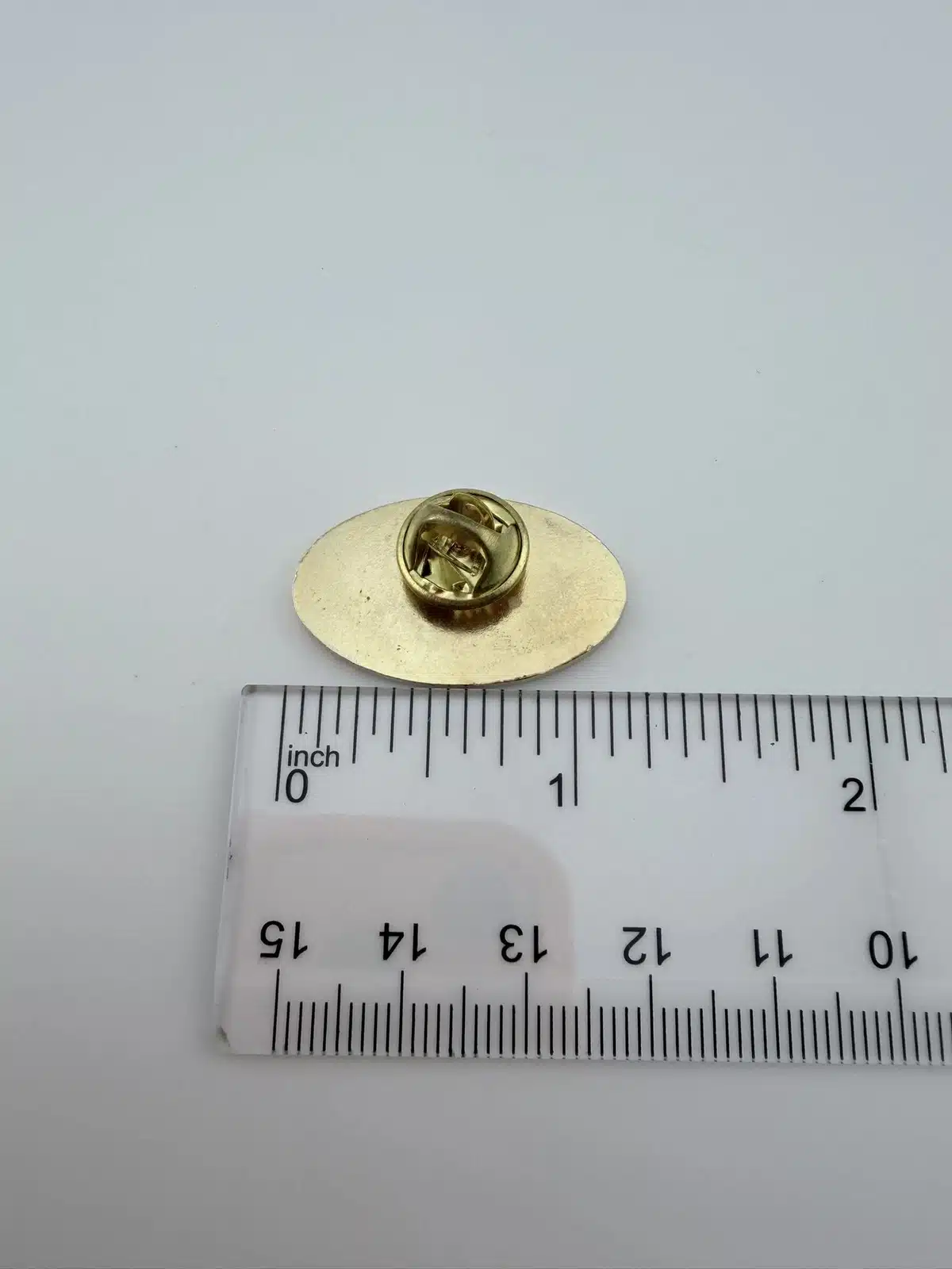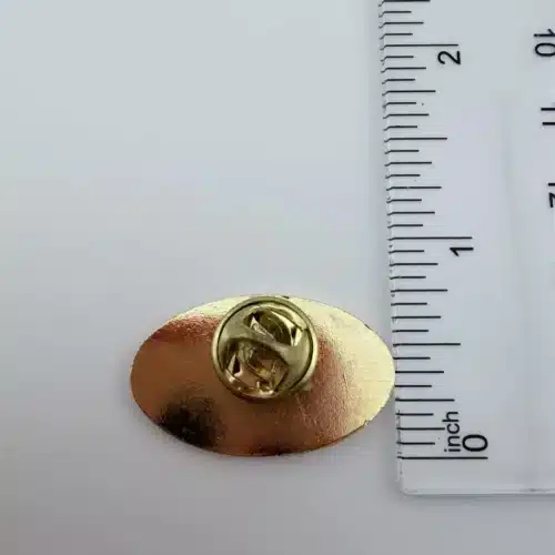 Pin measures just over 1 inch in width by just under 3/4 inch in height.