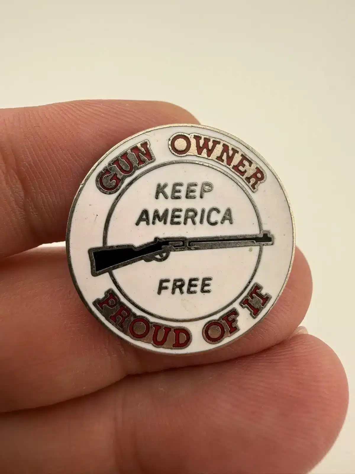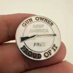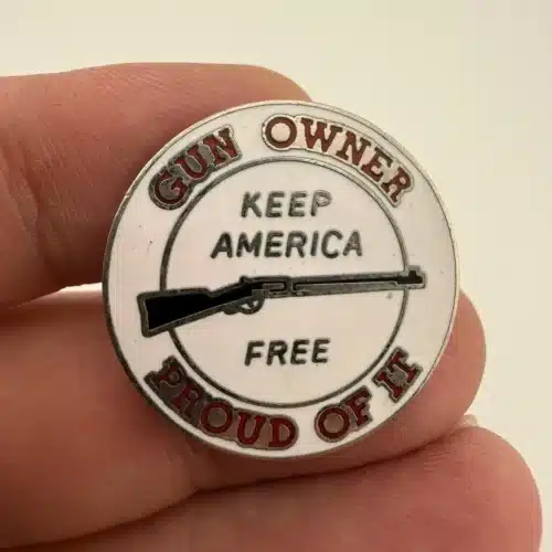 Keep America Free Gun Owner Proud Of It Pin with Rifle