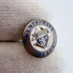The Knights of Columbus is a Catholic fraternal organization founded in 1882. Service pins like this are typically awarded to recognize milestone years of membership.