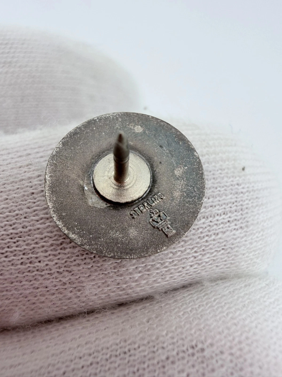 Condition: Used with minor marks including wear, discoloration, tarnish, age, and possibly a replaced rear post. Unpolished. Please review all photos for exact condition of item and size.