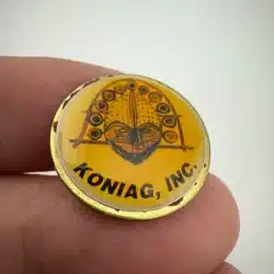 Koniag, INC. is a regional Alaska native corporation that was established by Congress in 1971. This particular pin features a beautiful Eskimo bird mask.