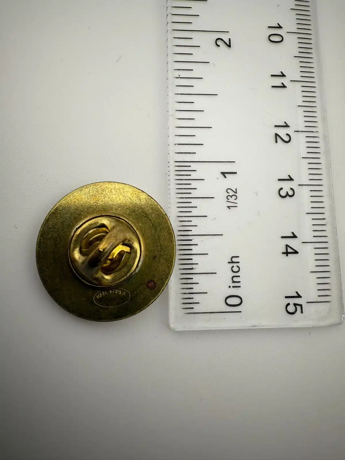 Condition: Used with flaws around exterior on the front of the pin + yellowing from age. Please review all photos for exact condition of item and size.
