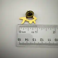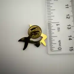 Really unique gold tone orca shaped pin from Koniag, INC., a regional Alaska native corporation that was established by Congress in 1971. This particular pin features a beautiful Eskimo bird mask.