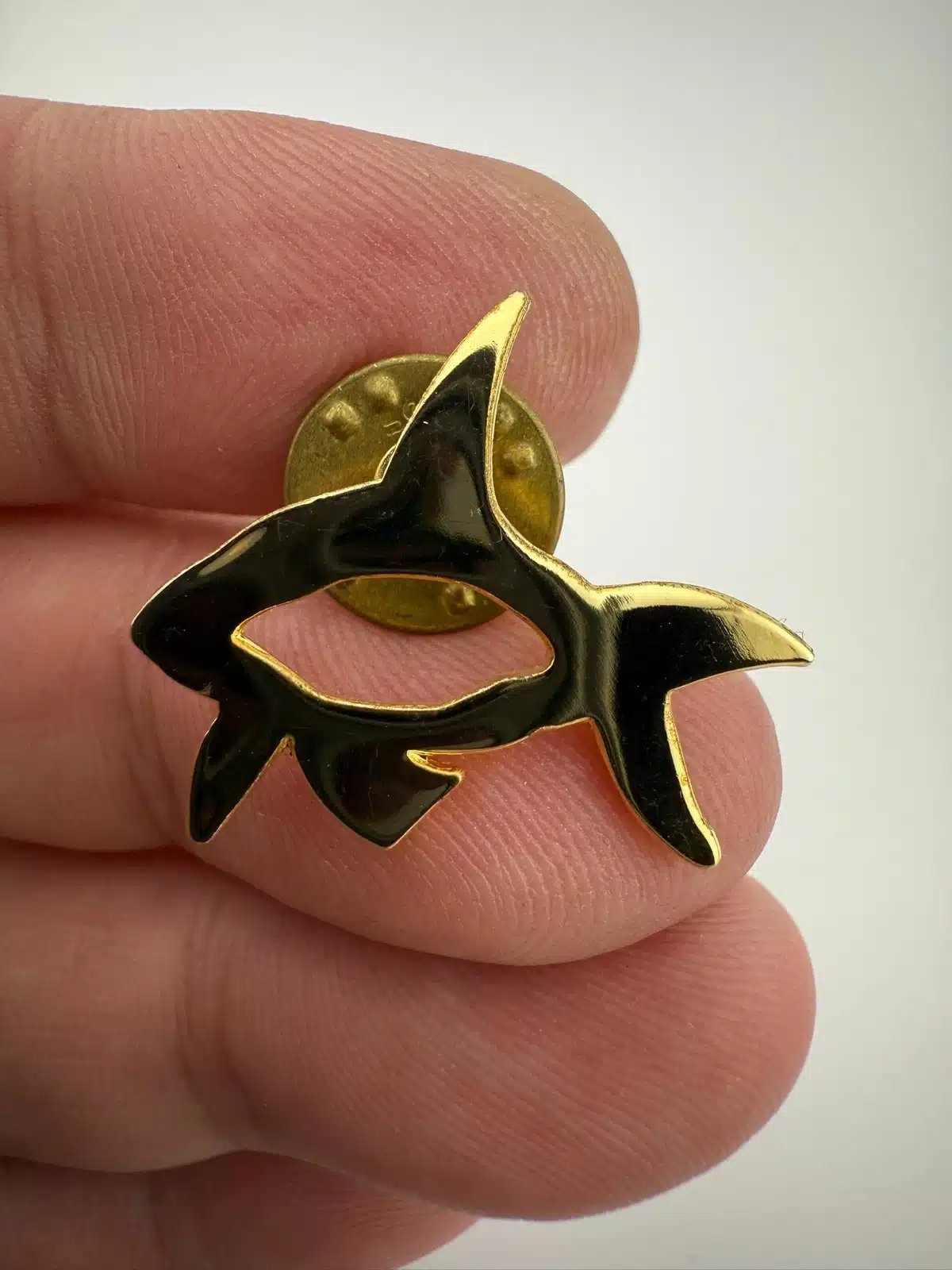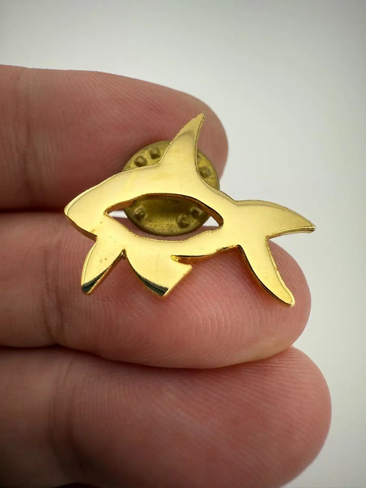 Really unique gold tone orca shaped pin from Koniag, INC., a regional Alaska native corporation that was established by Congress in 1971. This particular pin features a beautiful Eskimo bird mask.