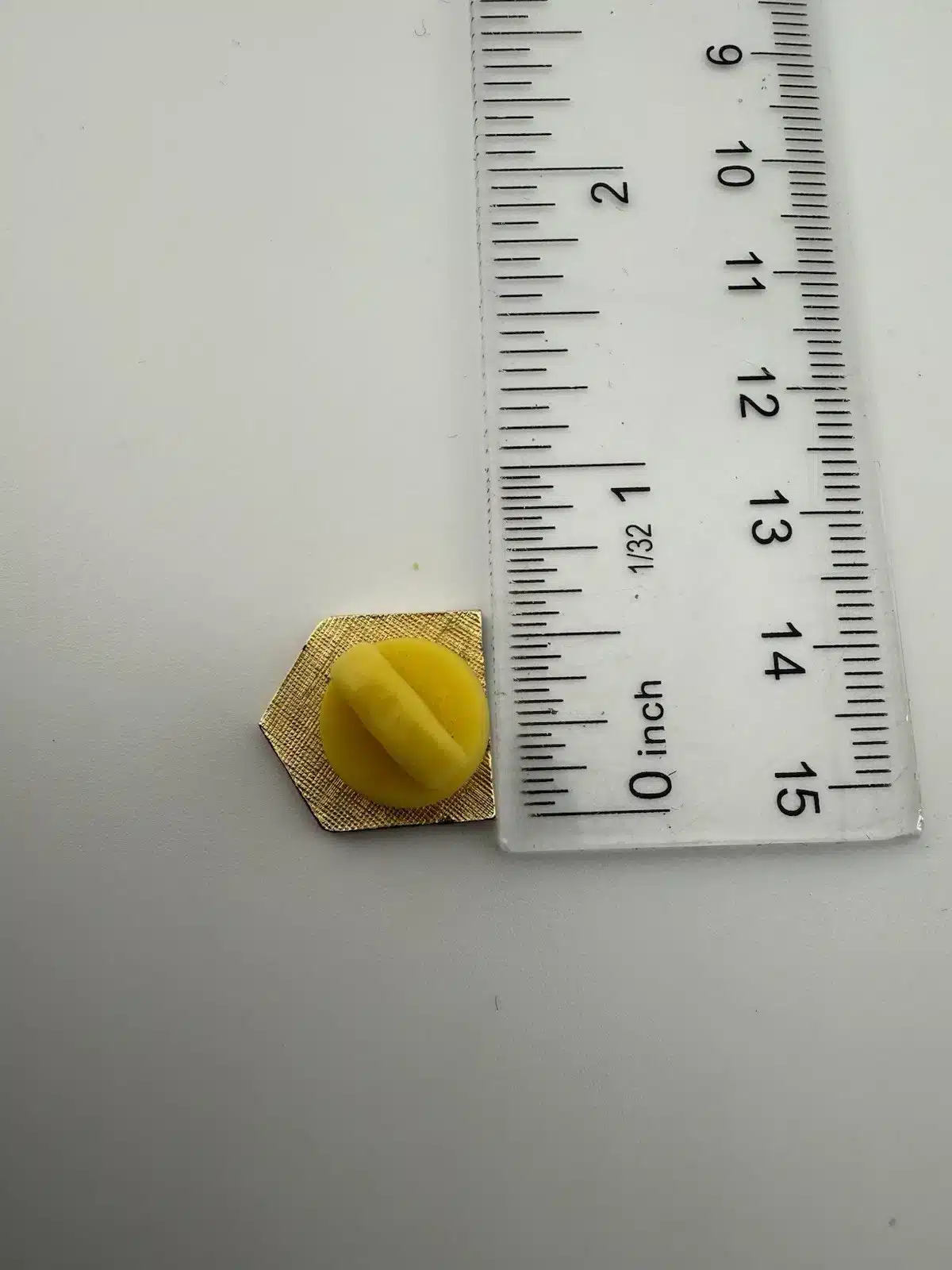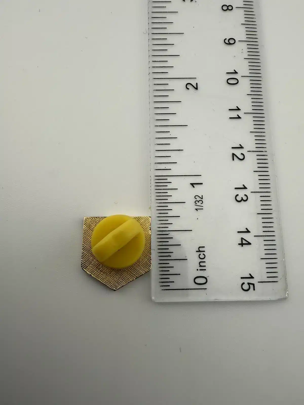 Used with marks, specifically chipped paint on crown + on the top right and edges of pin.