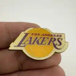 This pin features the iconic Los Angeles Lakers logo, prominently displaying the team’s name in bold lettering alongside a vibrant basketball. The design captures the essence of the Lakers’ rich history in the NBA, reflecting their status as one of the league’s most successful franchises.