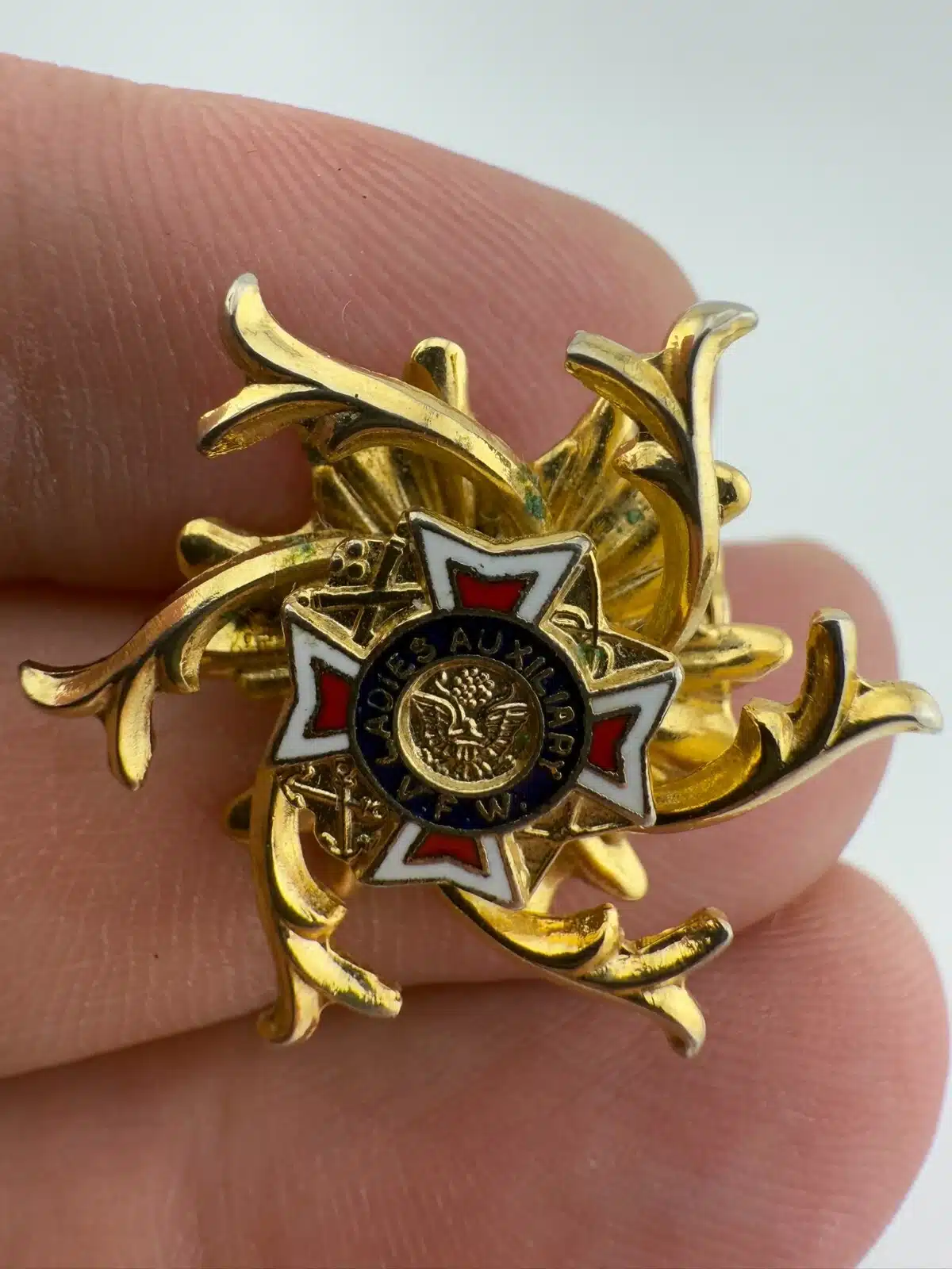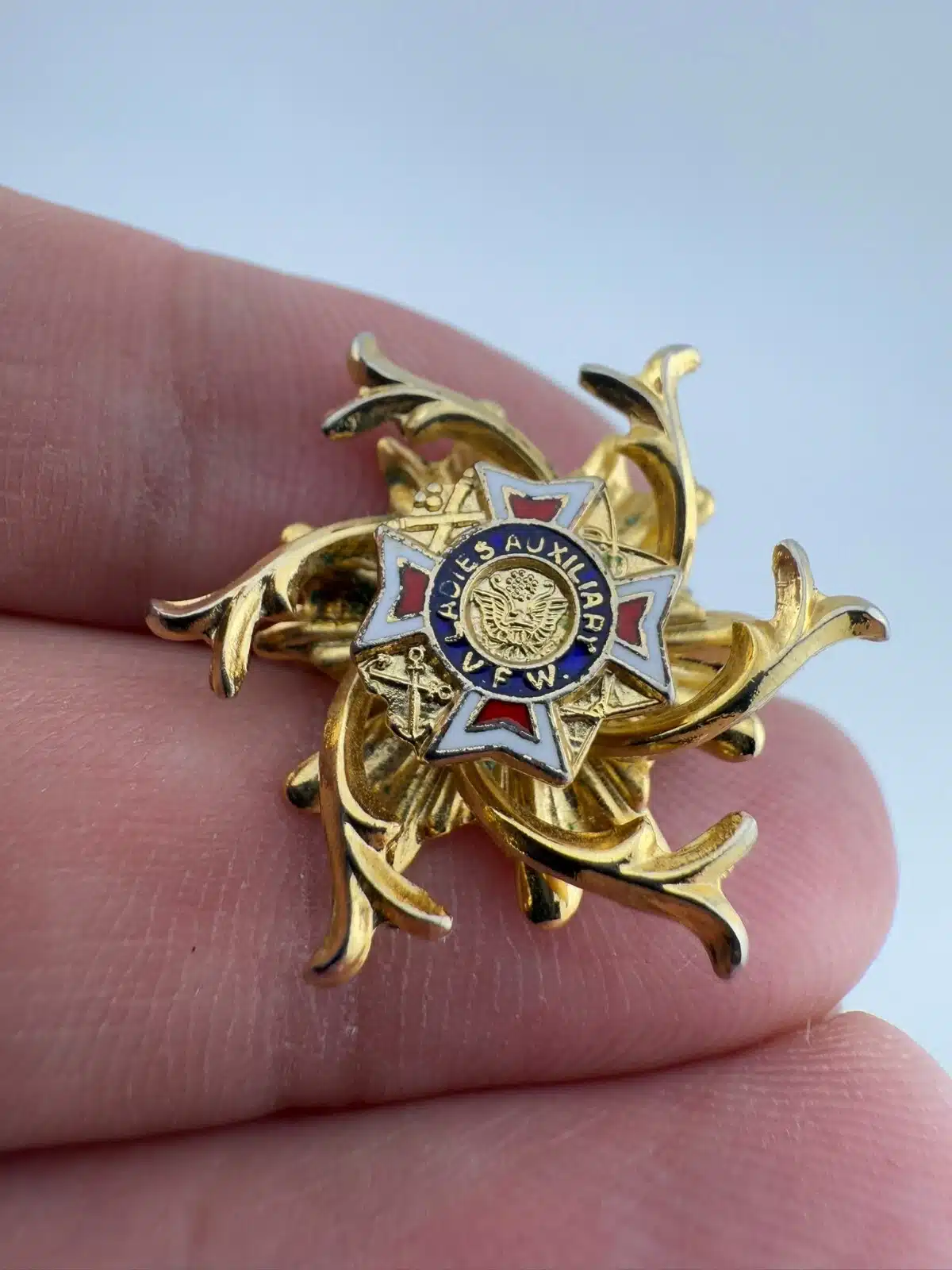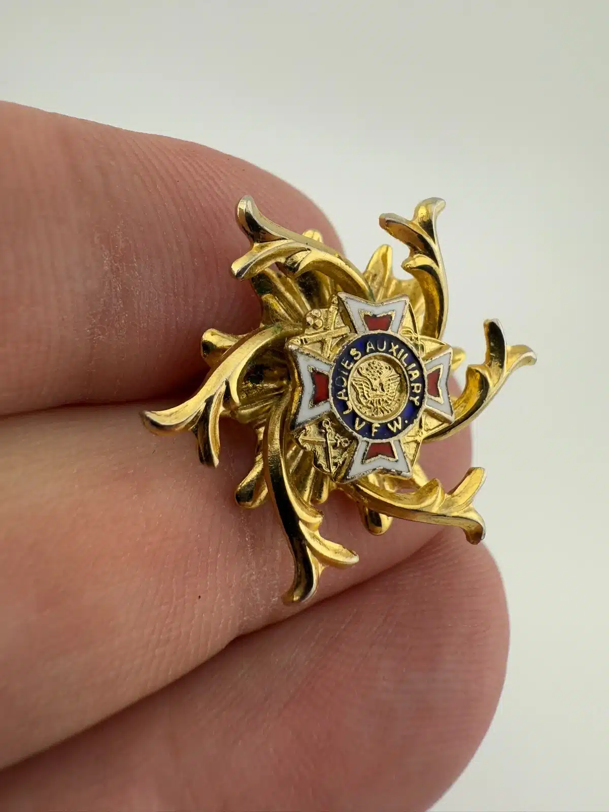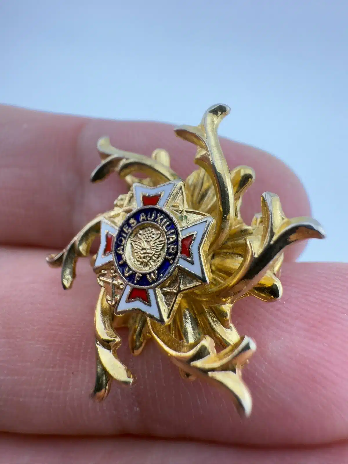 Ladies Auxiliary VFW Large Gold Tone Brooch Pin