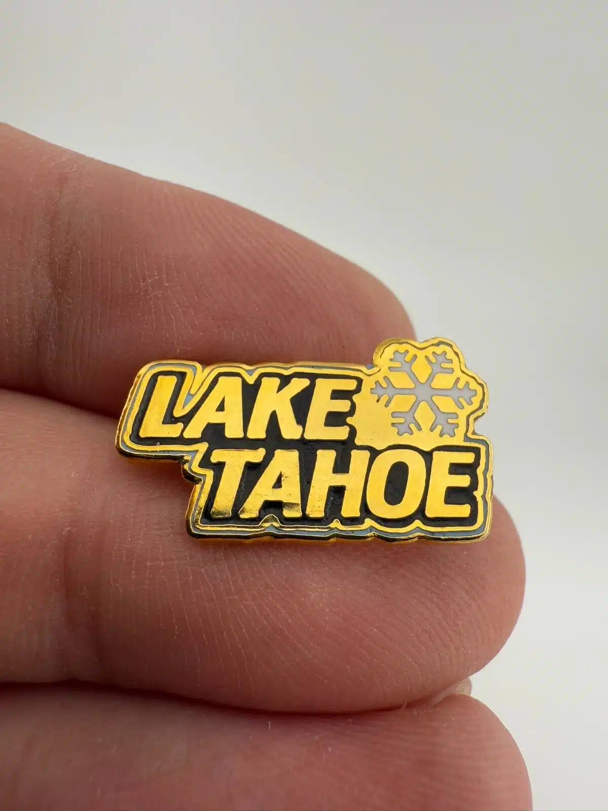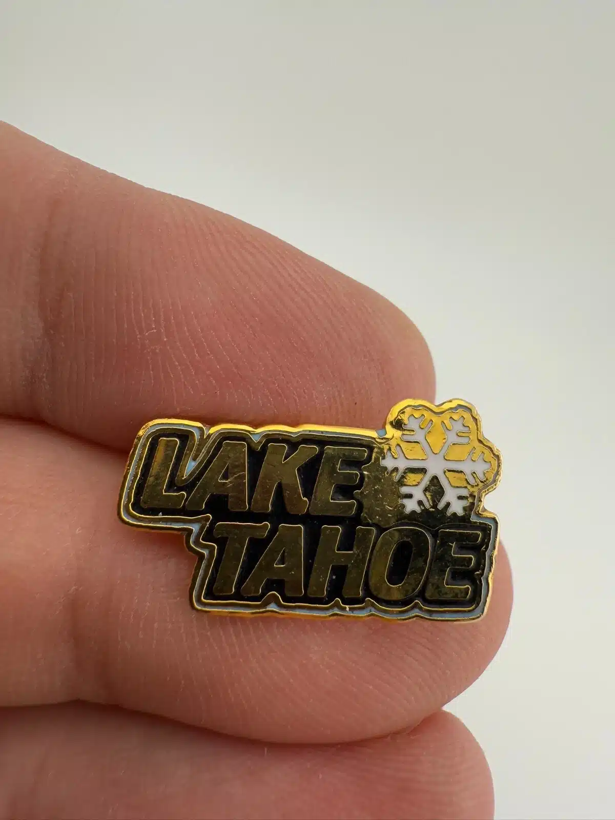 Lake Tahoe Snowflake Gold Tone Pin Brooch – Small Size