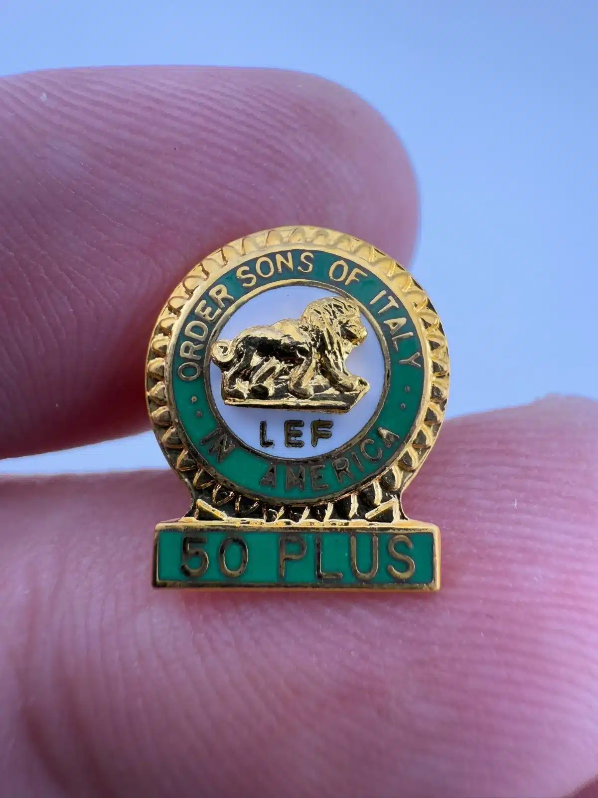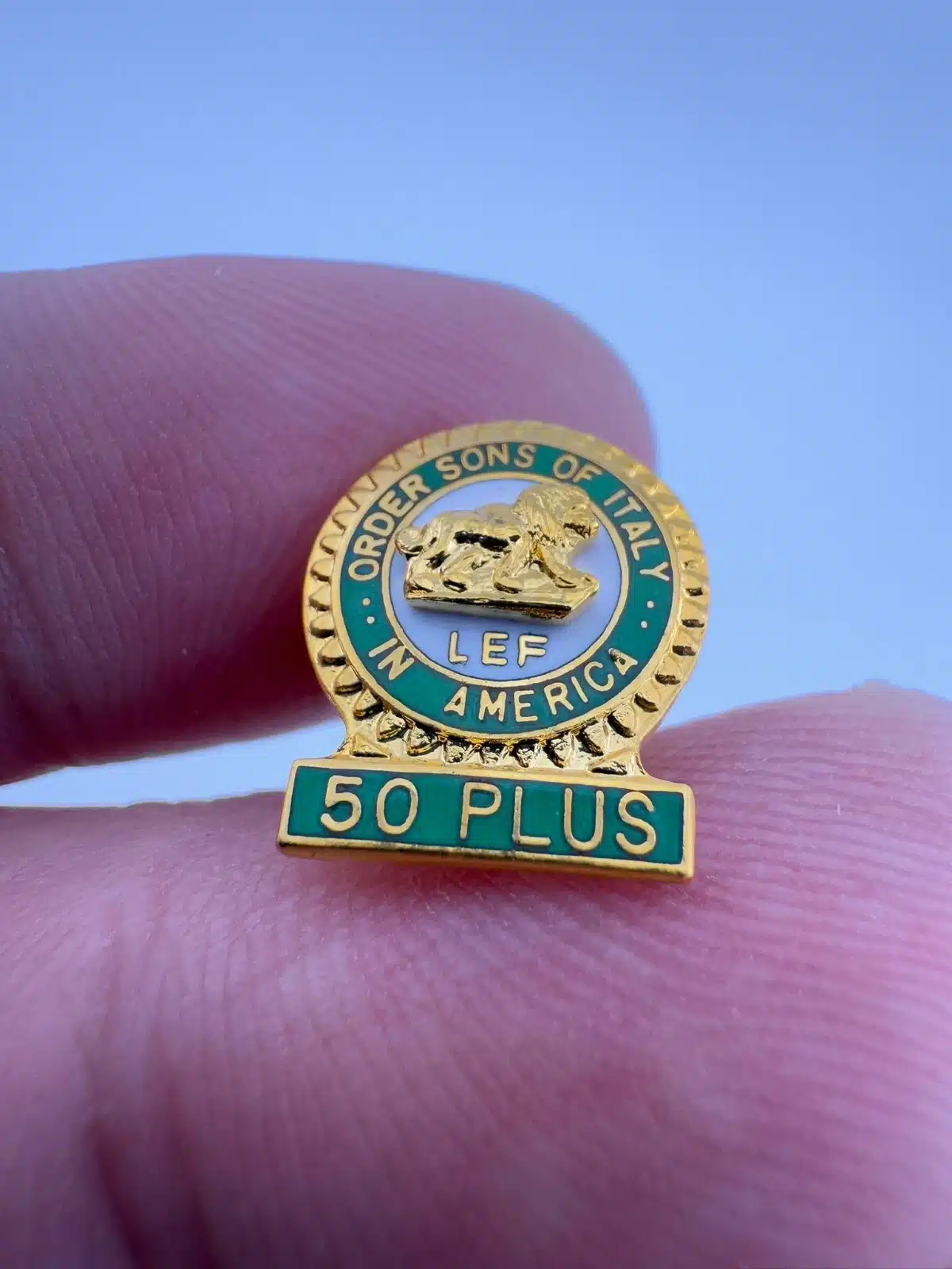 LEF Order Sons of Italy in America 50 Plus Year Member Gold Tone Tie Tack Pin