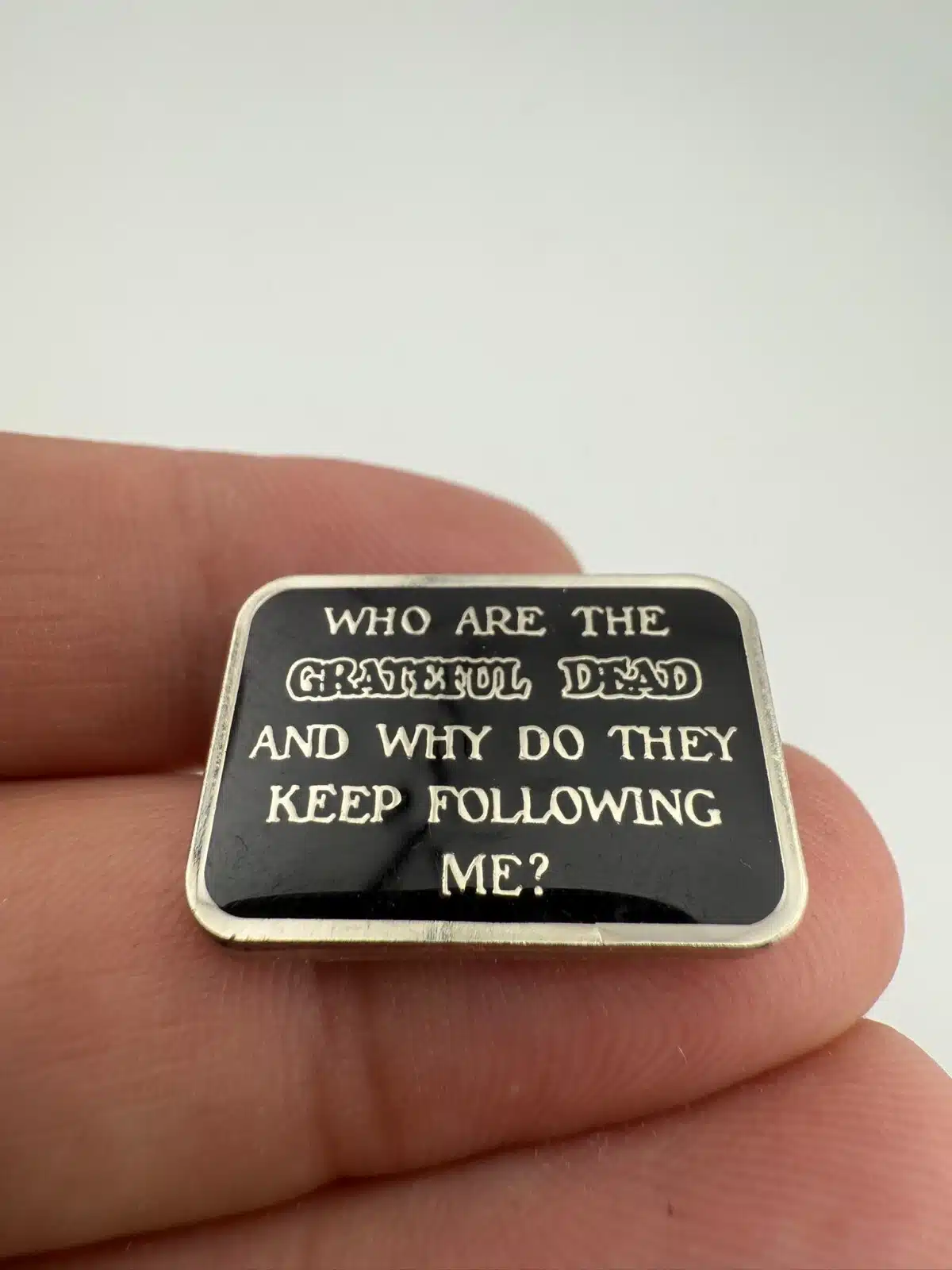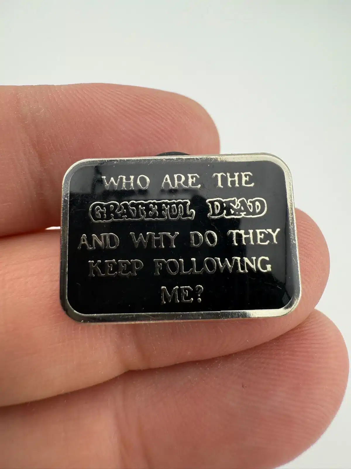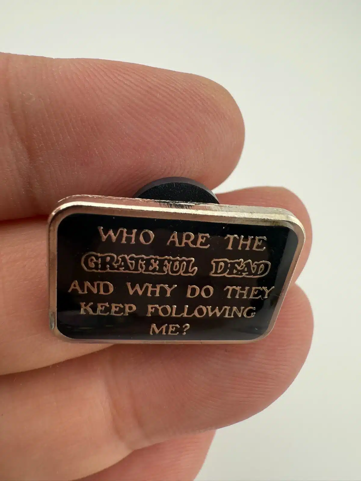 Pin reads: Who are the Grateful Dead and why do they keep following me?