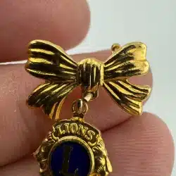 Lions Club International Ribbon Bow and Hanging Charm Pin Brooch