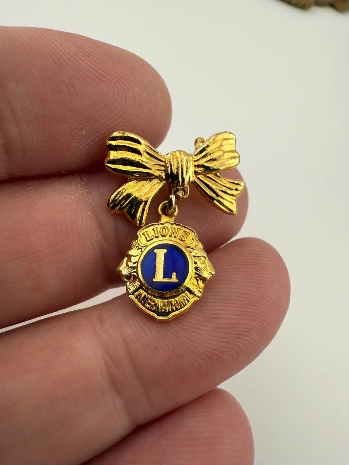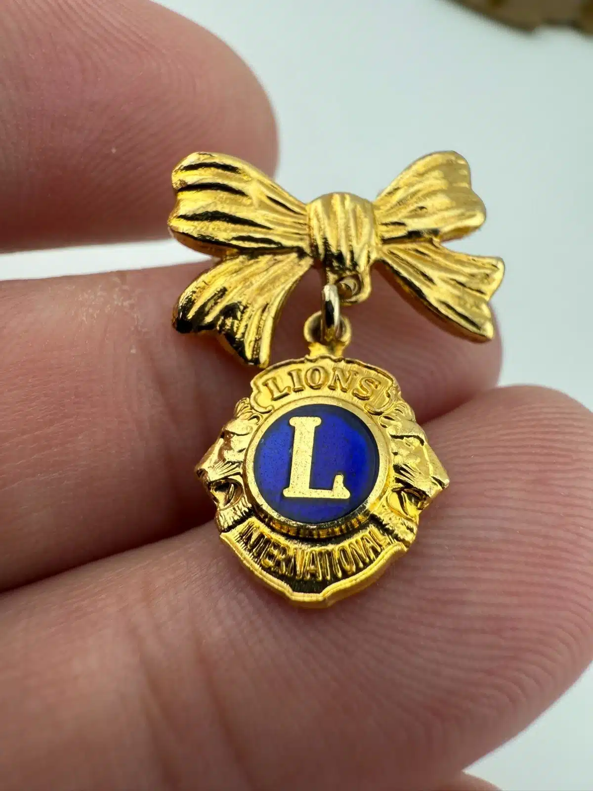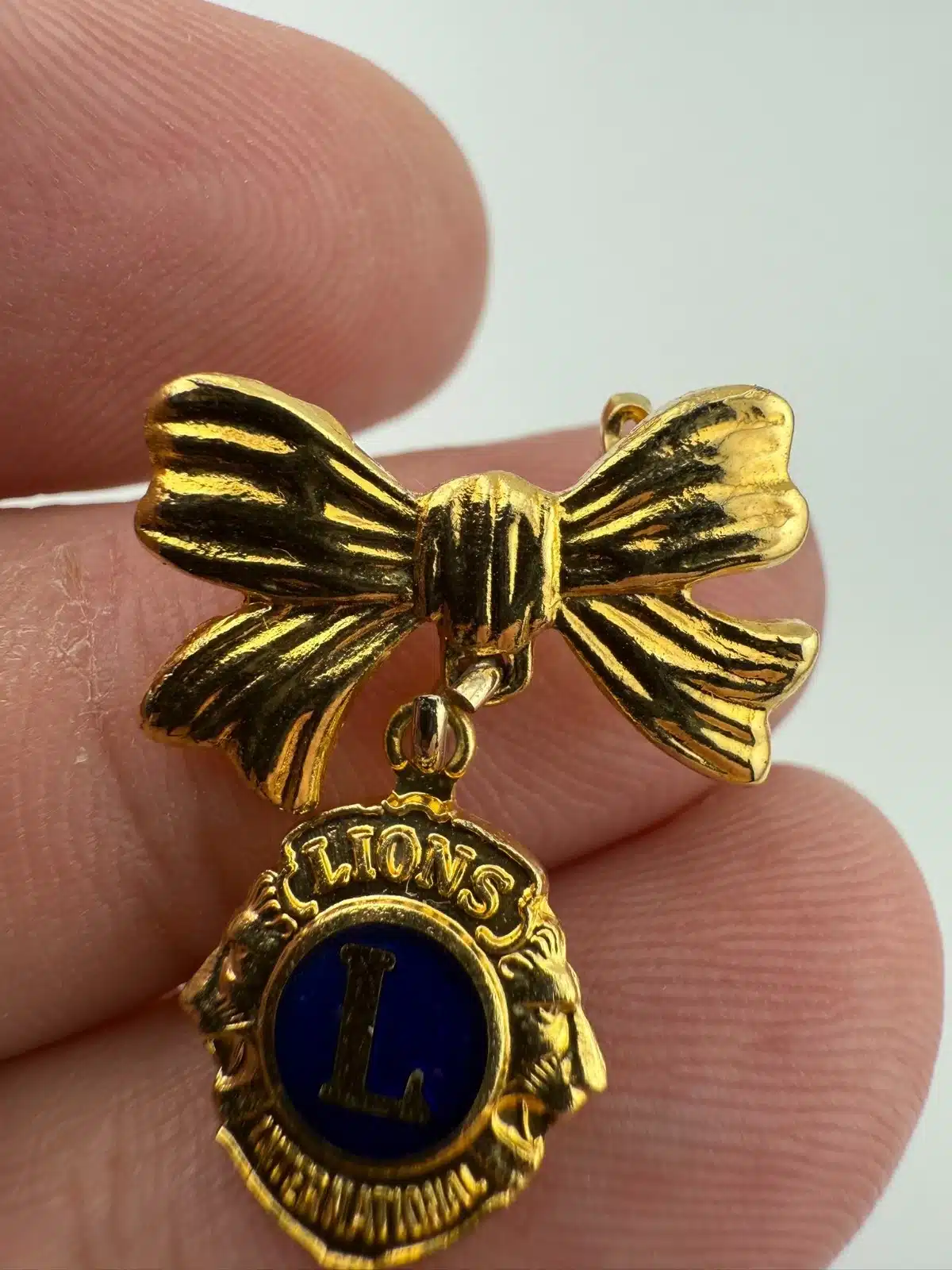Lions Club International Ribbon Bow and Hanging Charm Pin Brooch