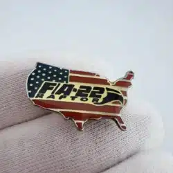 This pin features the silhouette of the United States, adorned with an overlay of the American flag, symbolizing national pride. Prominently displayed on top is the text F/A-22 Raptor, a cutting-edge stealth fighter jet known for its advanced technology and capabilities.
