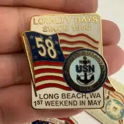 Long Beach WA Loyalty Days Pins – US Navy, Air Force, Coast Guard, + Police/Fire
