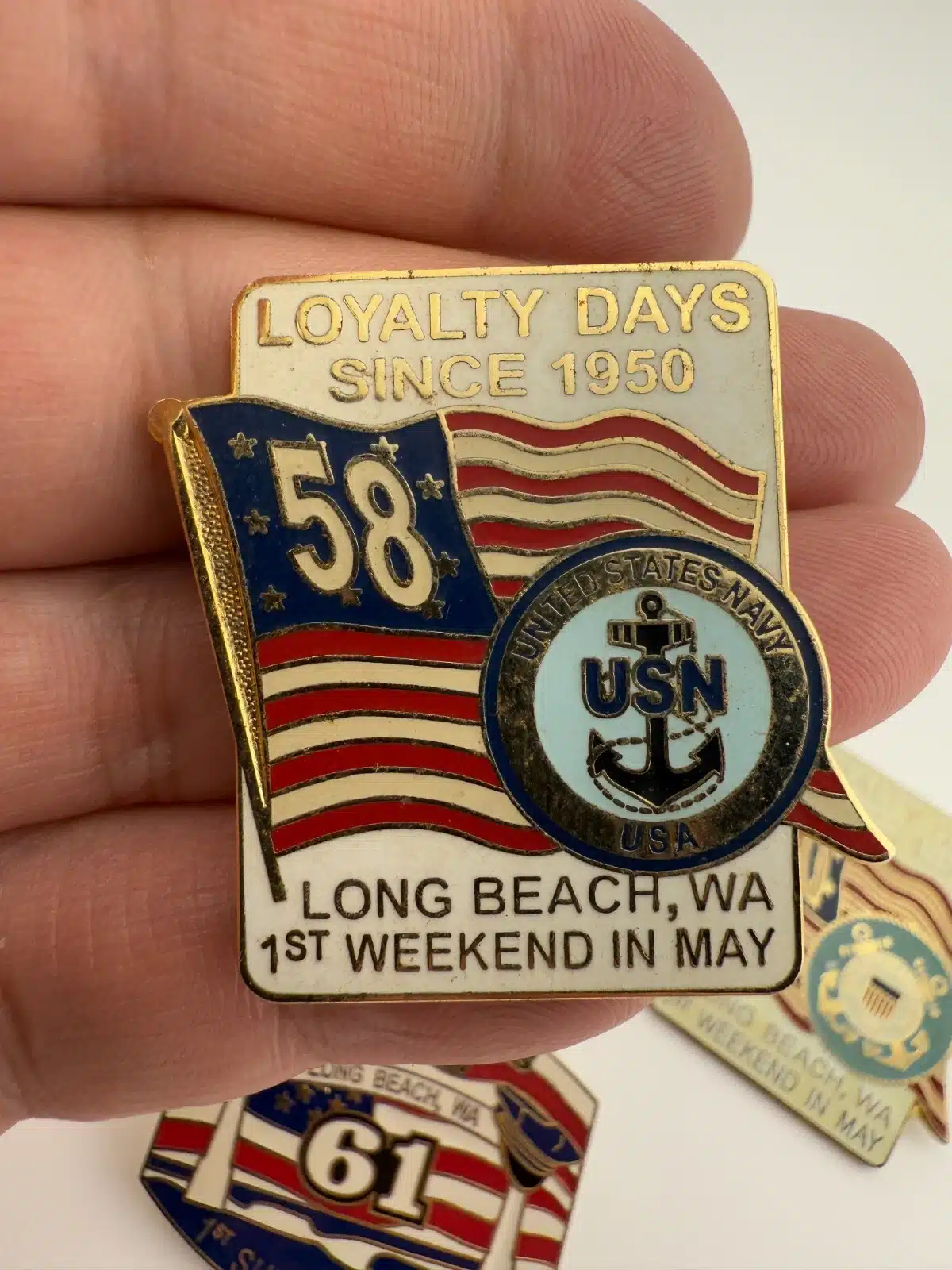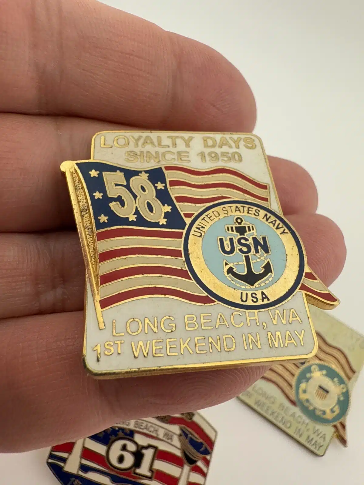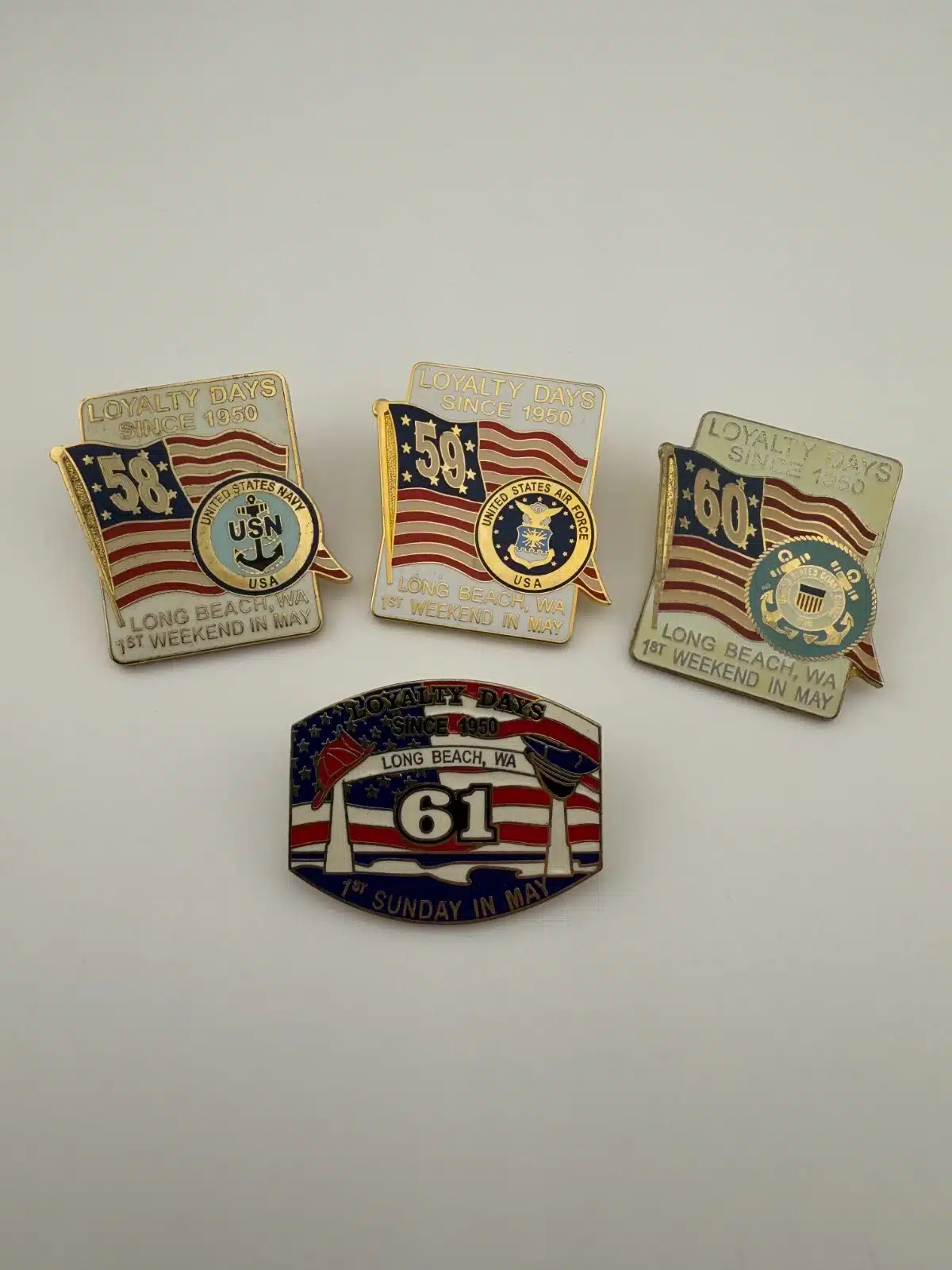 Long Beach WA Loyalty Days Pins – US Navy, Air Force, Coast Guard, + Police/Fire