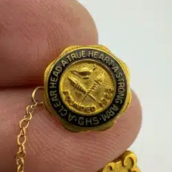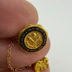 James A. Garfield Senior High School in Los Angeles, California pin featuring the school motto and an attached 1963 graduation year pin on chain.