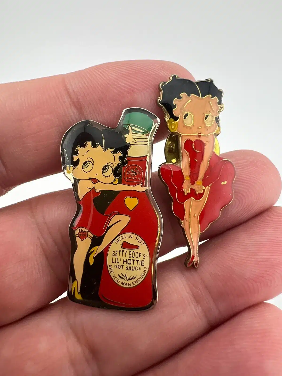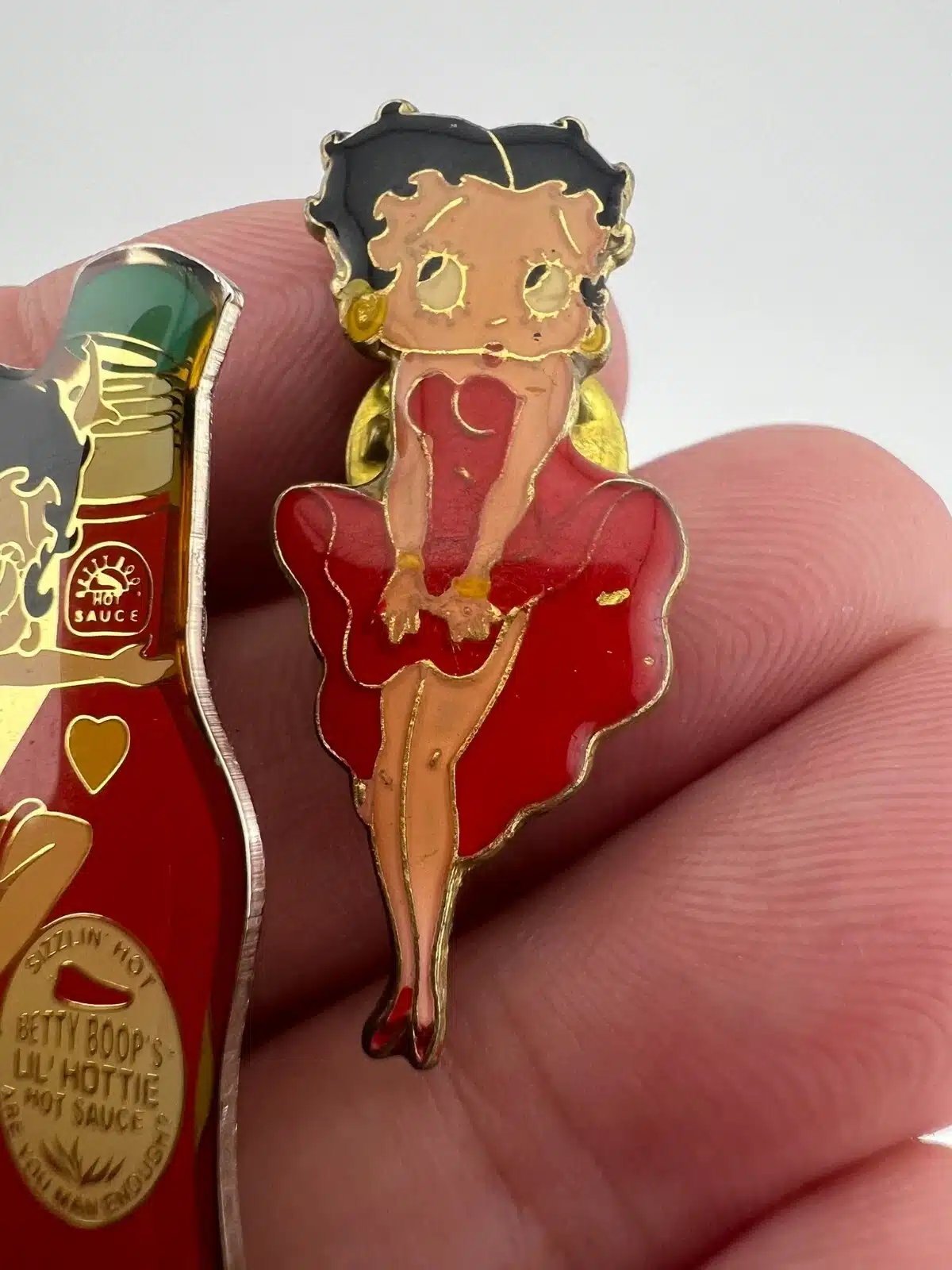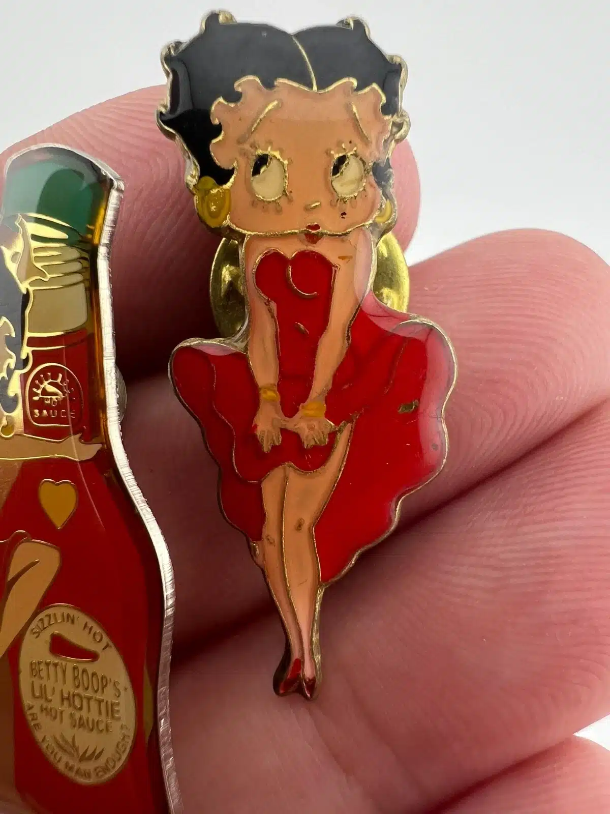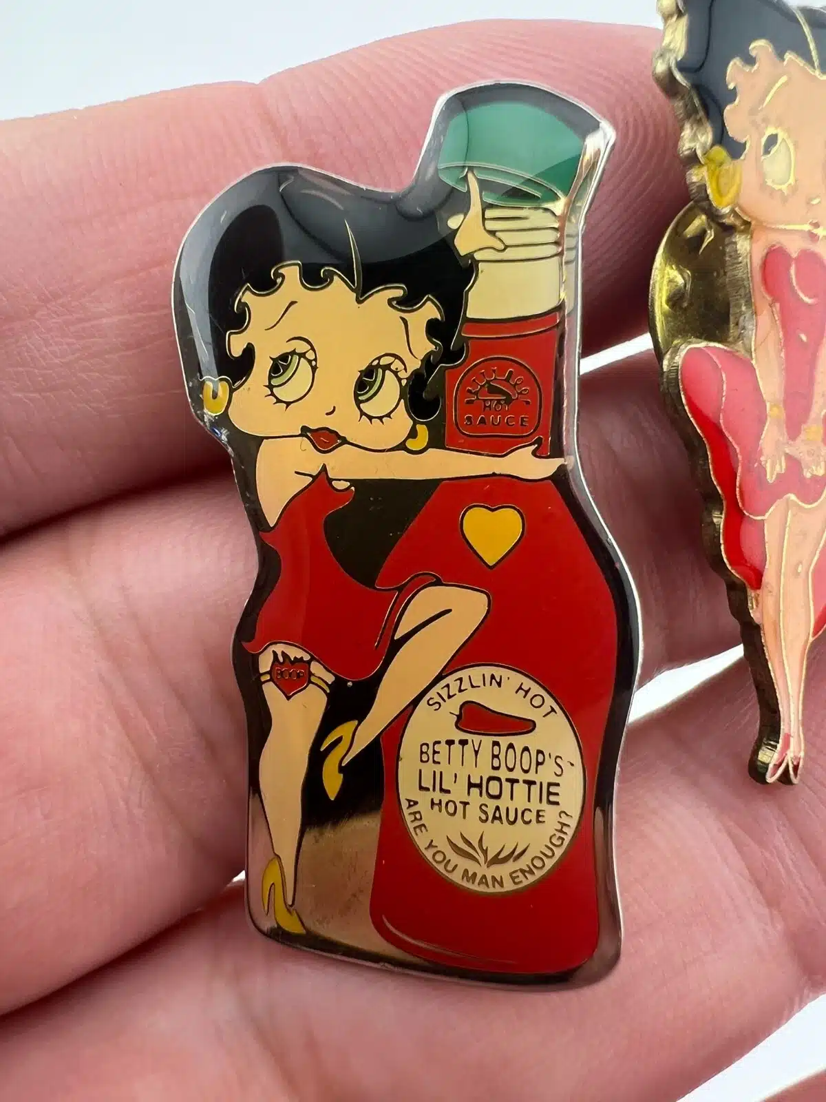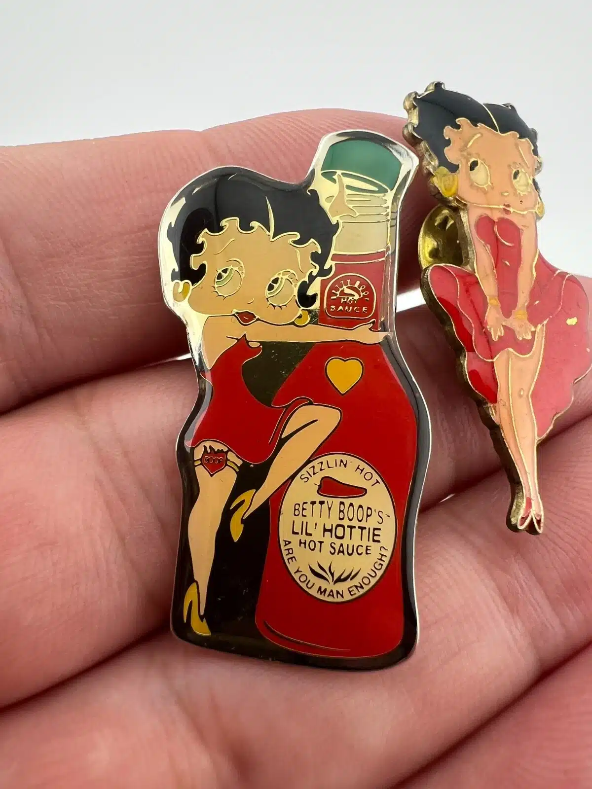 Lot of 2 Betty Boop Lapel Pins including Lil Hottie Hot Sauce – Used