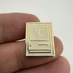 This lapel pin features a charming happy face design set within the iconic shape of the Macintosh personal computer. I also have another version of this pin available which is various shades of black and grey.
