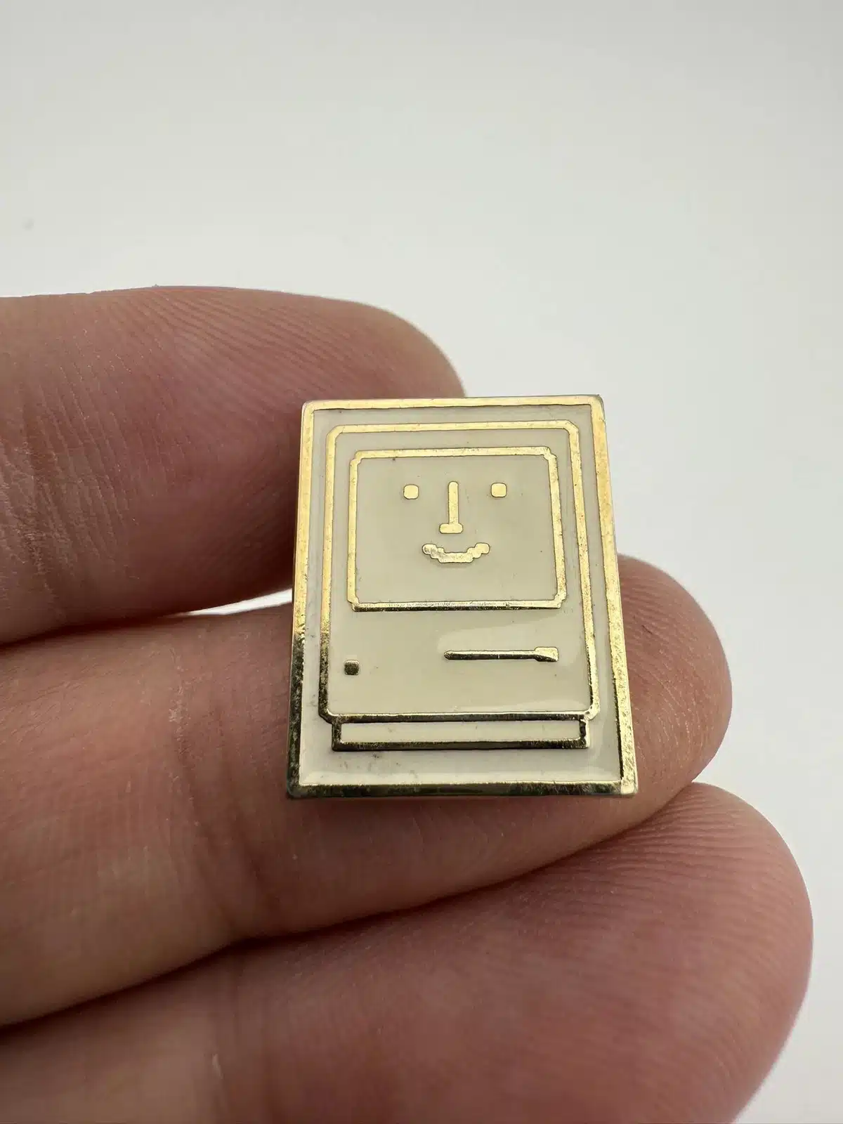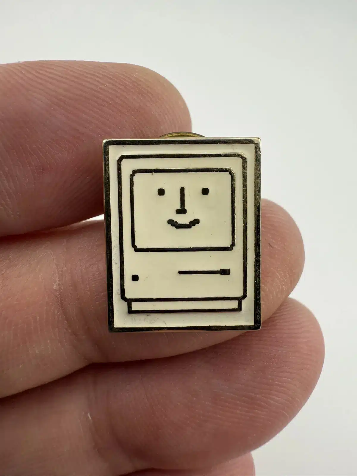 This lapel pin features a charming happy face design set within the iconic shape of the Macintosh personal computer. I also have another version of this pin available which is various shades of black and grey.