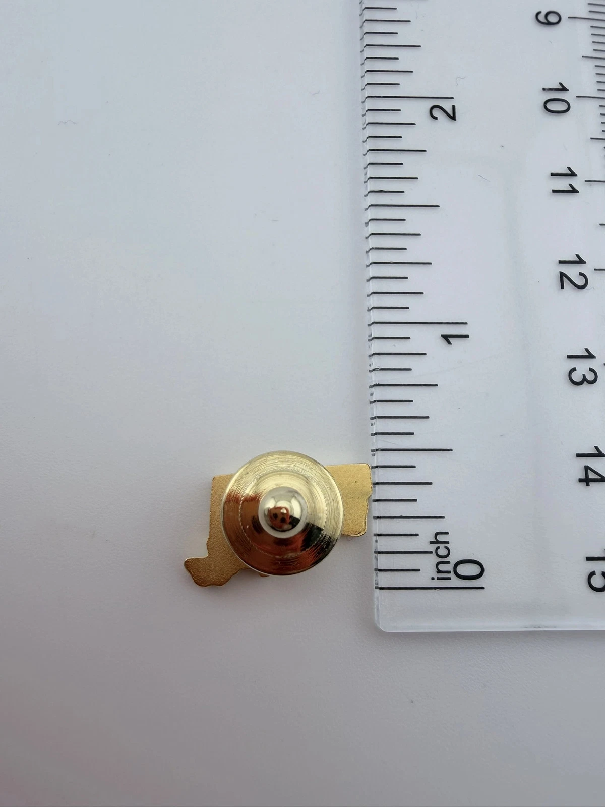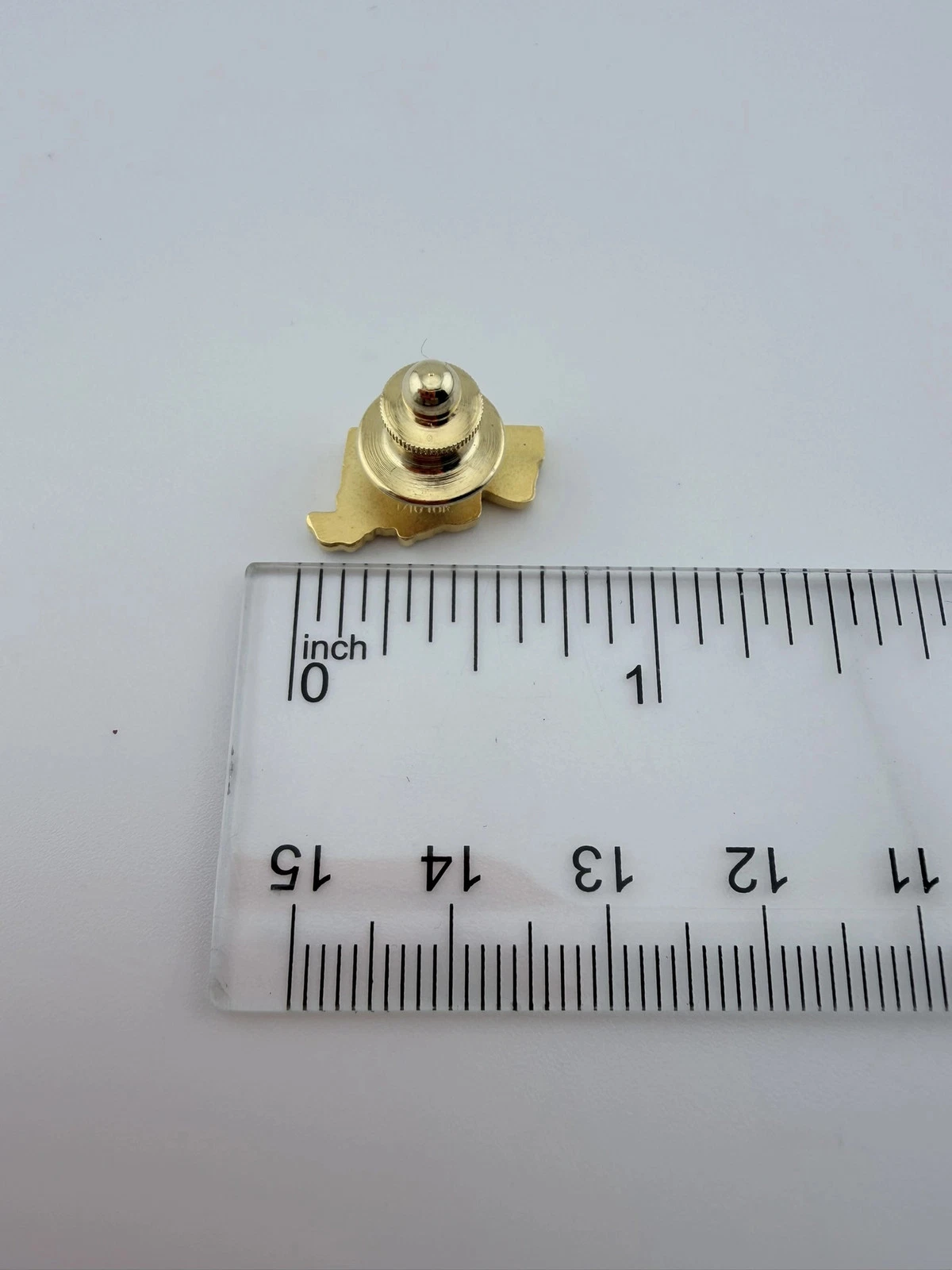 The pin measures approximately 3/4 inch in width by 1/2 inch in height.