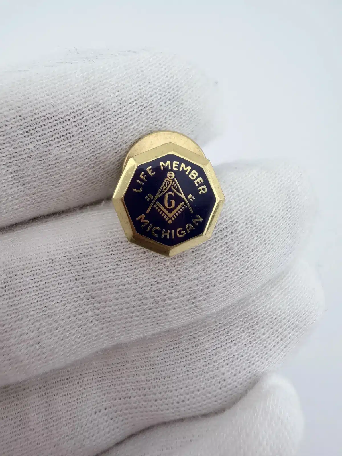 Masonic Michigan Life Member Pin – Terryberry 24K GP – Dark Purple Enamel