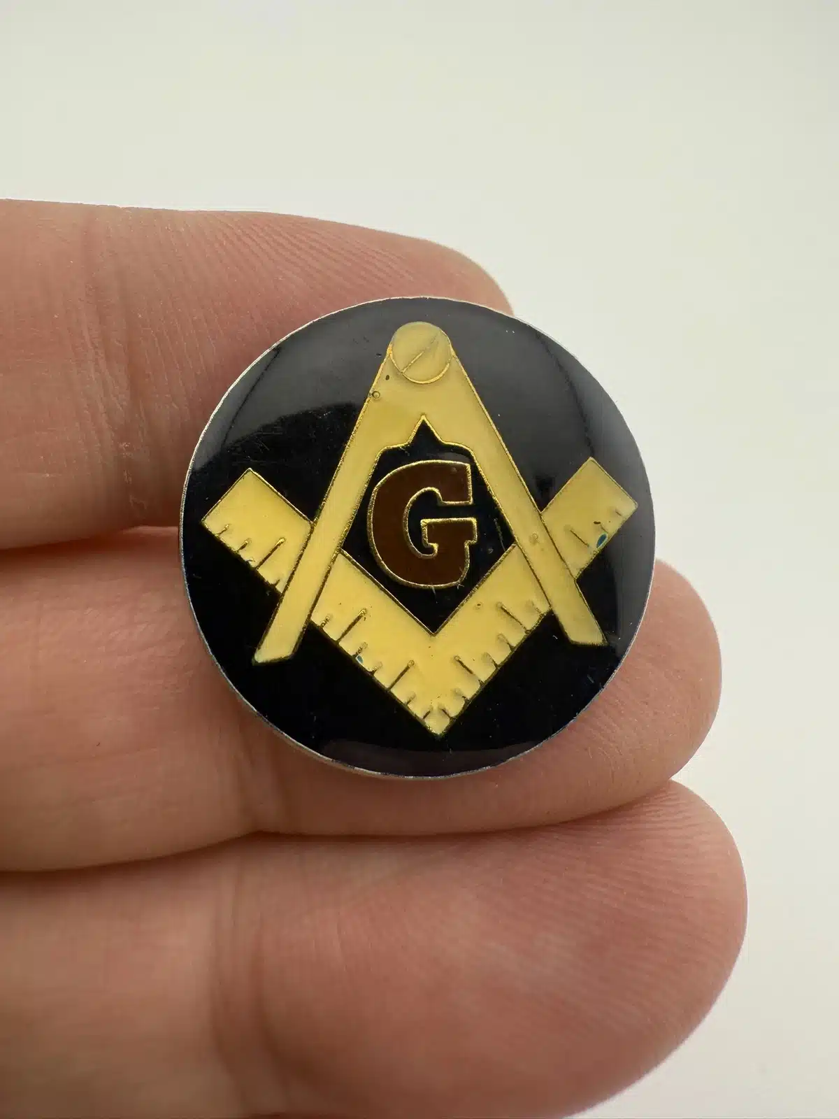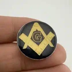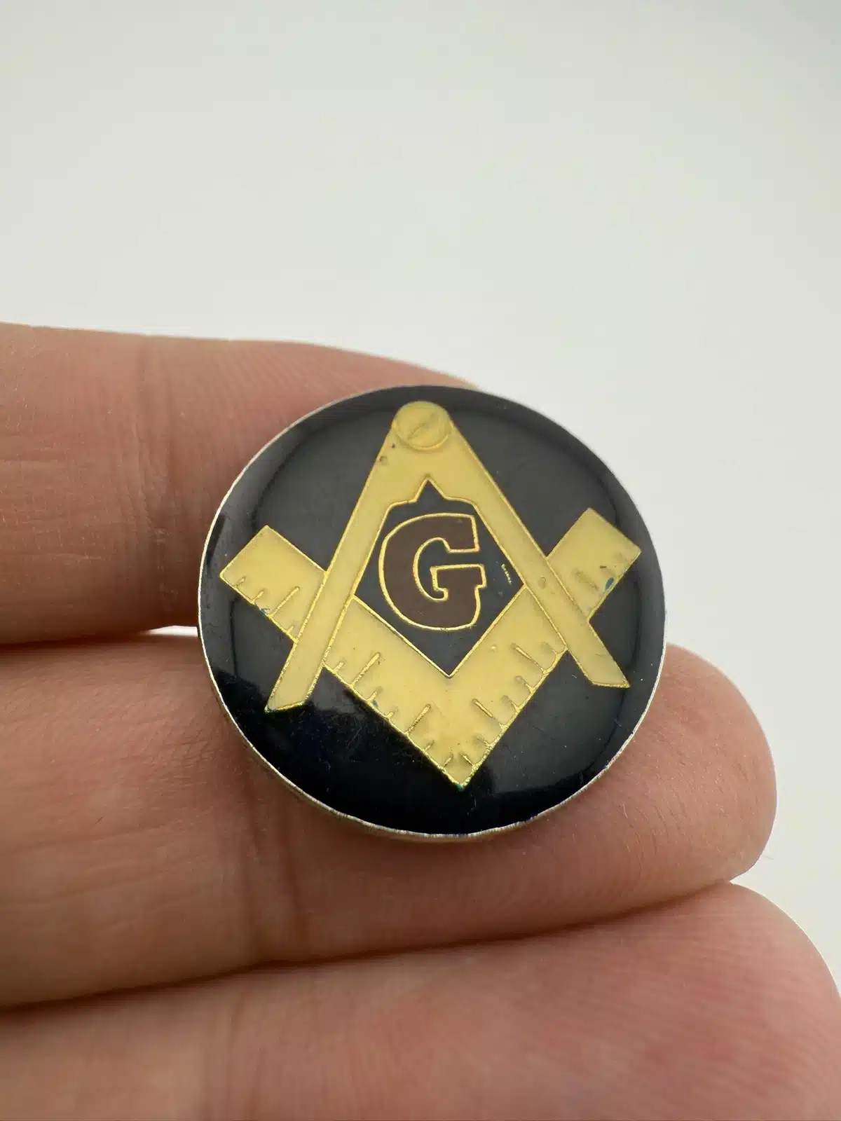 This Masonic Square & Compasses lapel pin features a striking black background and highlights the iconic symbols of Freemasonry.