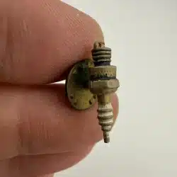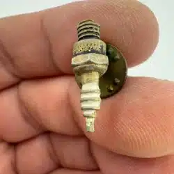 Whether you’re a mechanic or just someone who loves working on cars, this miniature spark-plug pin is a fun little piece. I’m not completely sure if it was tied to a specific car or brand, but it’s definitely got that classic automotive vibe.