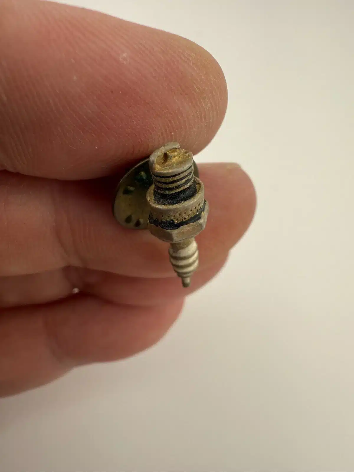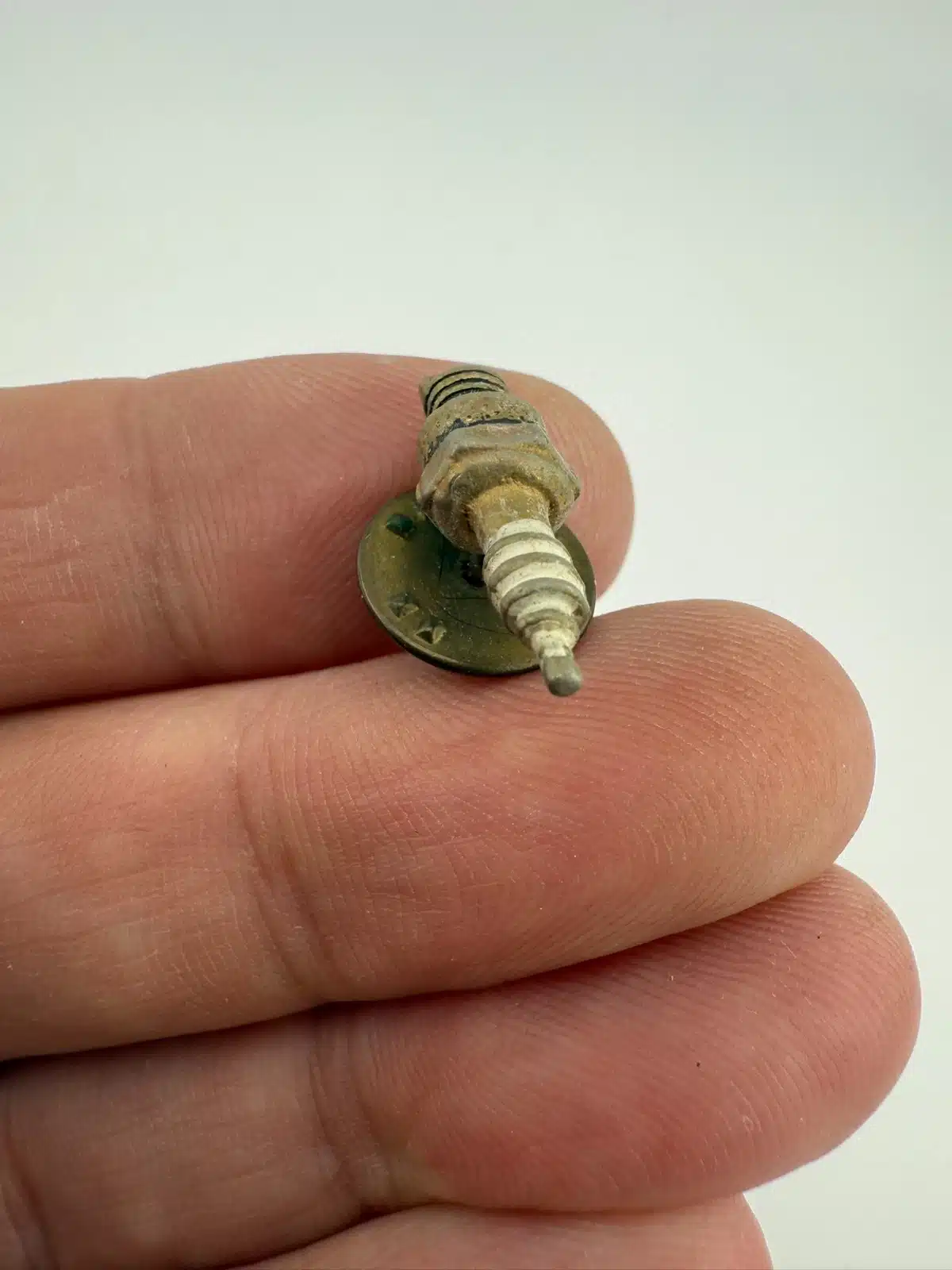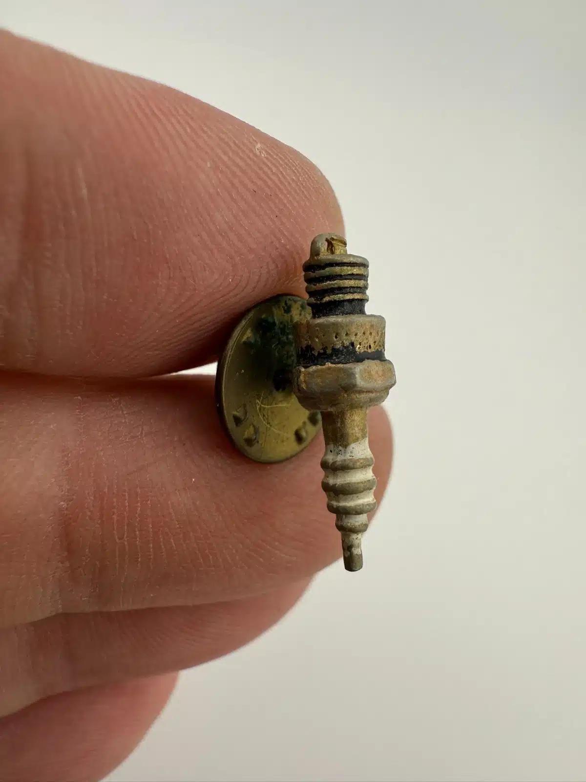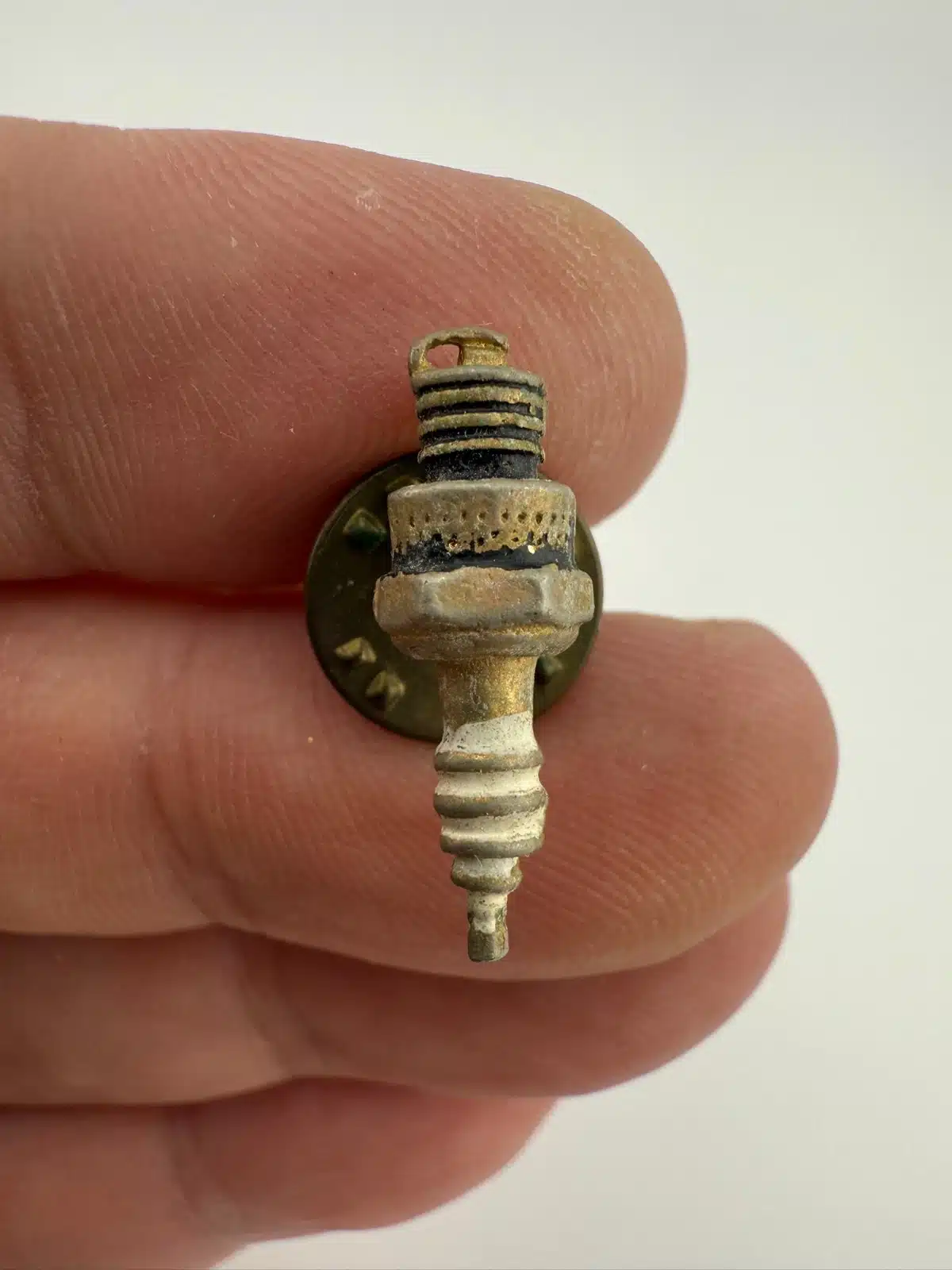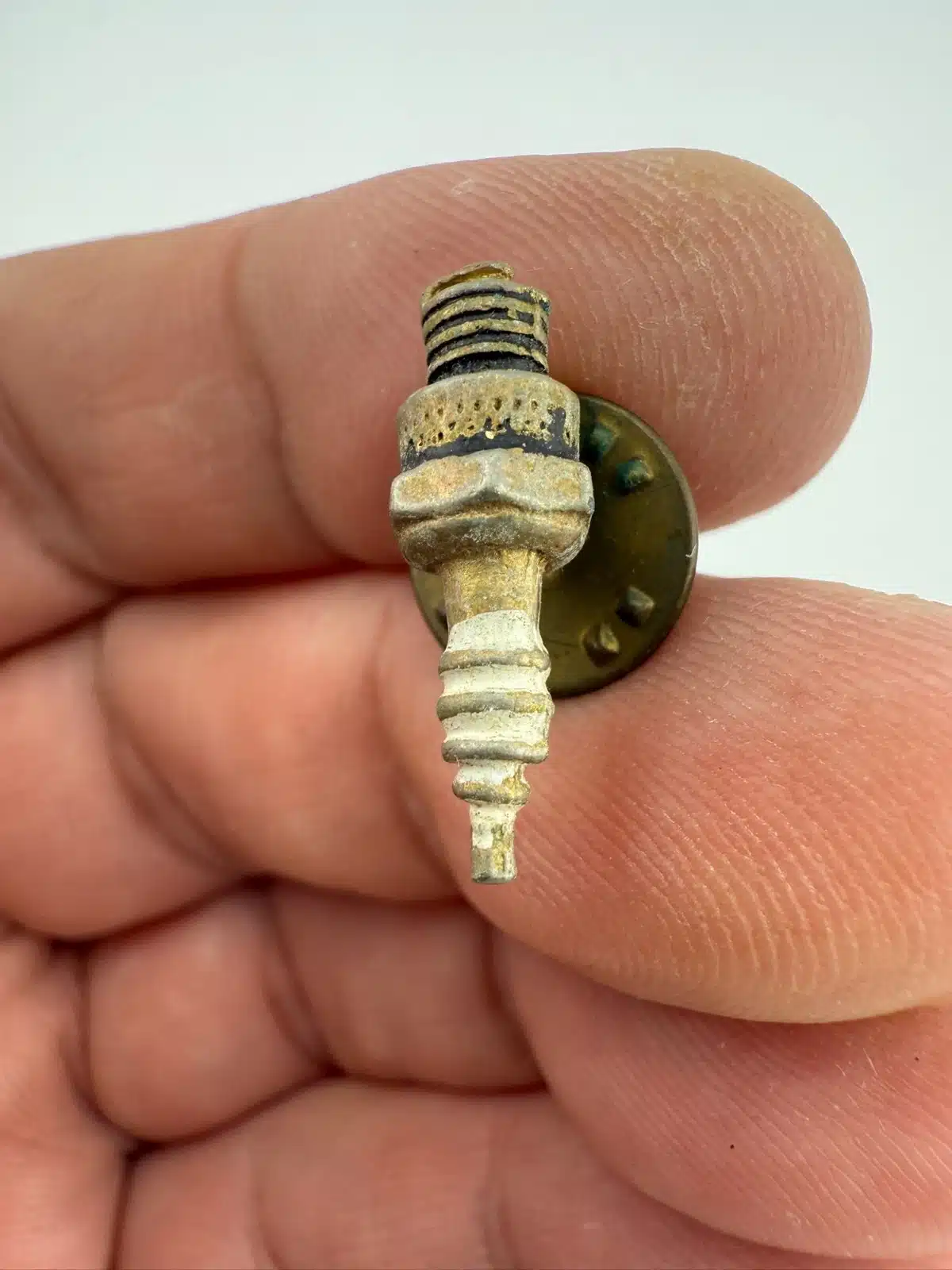 Whether you’re a mechanic or just someone who loves working on cars, this miniature spark-plug pin is a fun little piece. I’m not completely sure if it was tied to a specific car or brand, but it’s definitely got that classic automotive vibe.