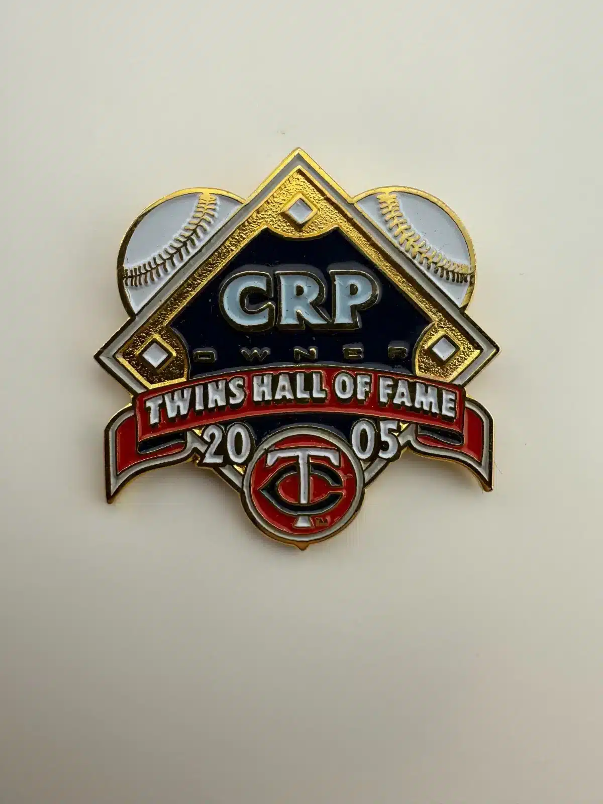 I believe this is a 2005 pin that was created to commemorate the induction of notable figures into the Twins Hall of Fame. I am however unsure what CRP Owner is in reference too.