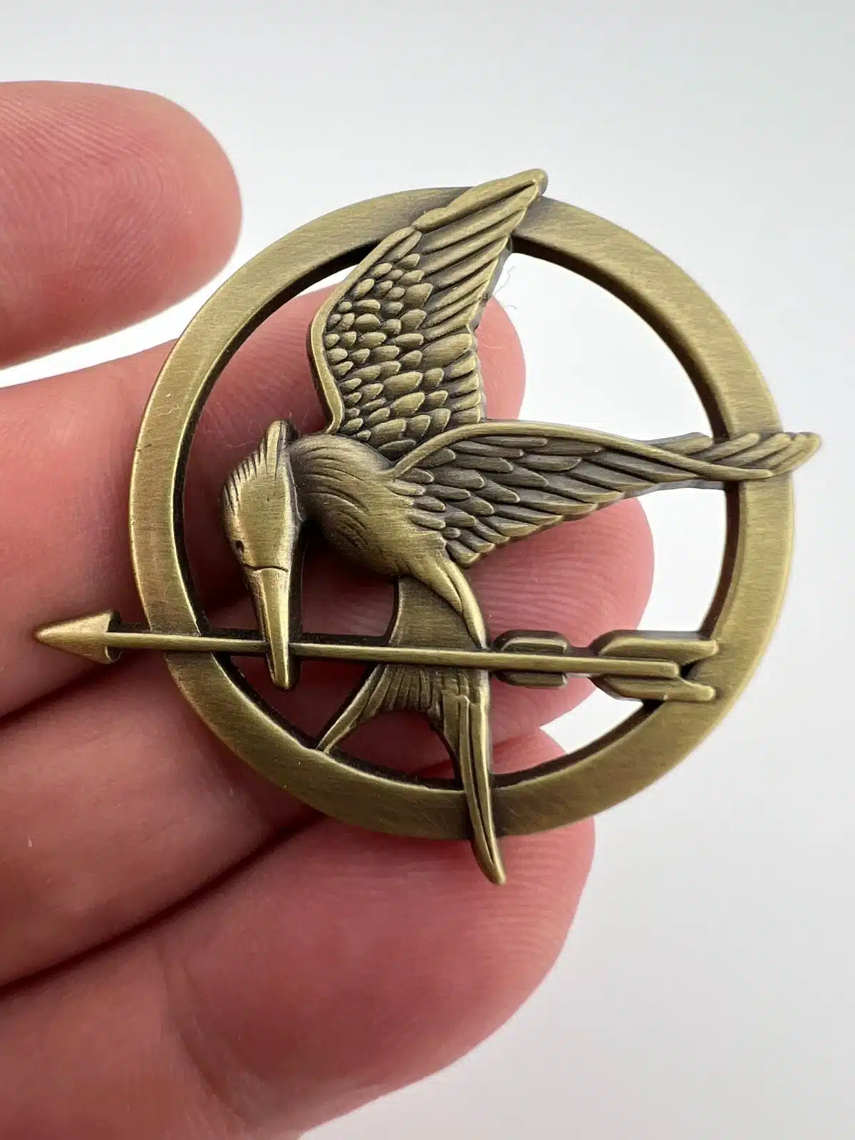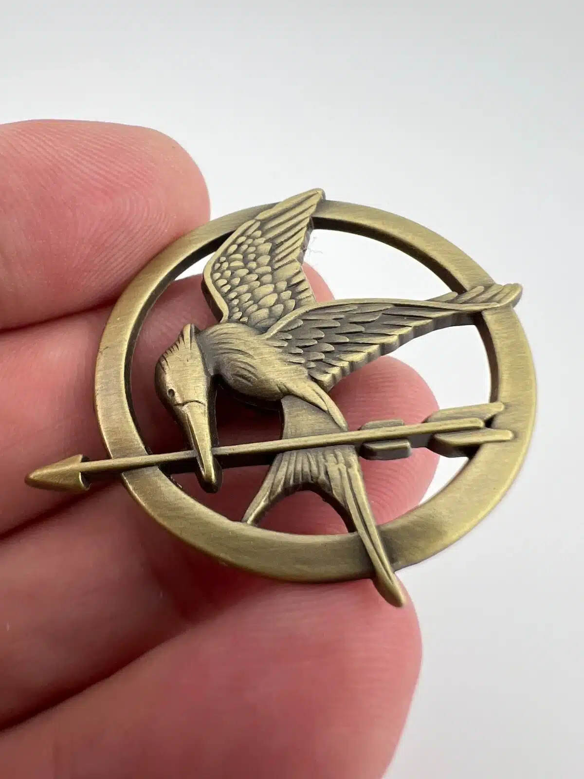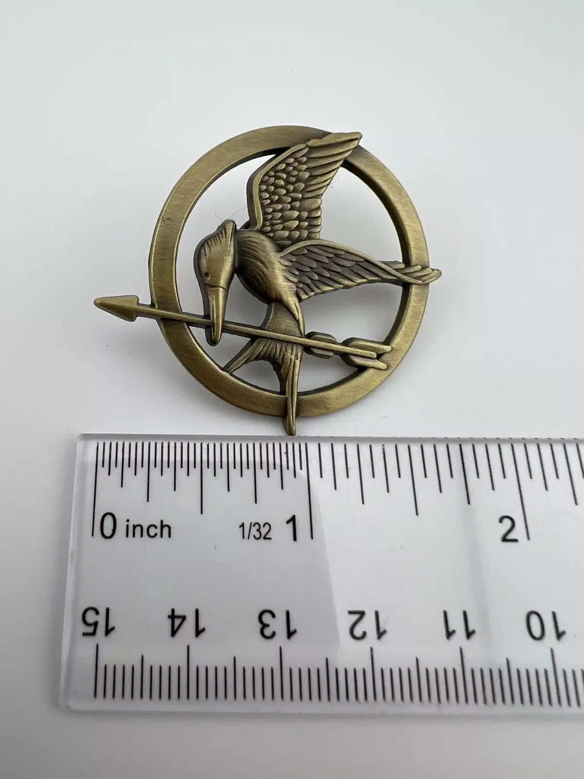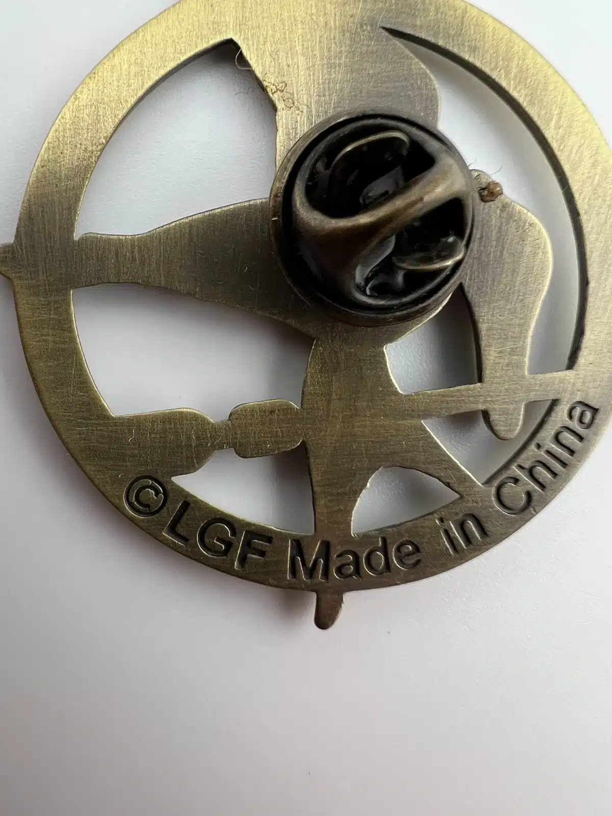 Mockingjay The Hunger Games Round Bird Arrow Pin Brass Tone Lapel Brooch